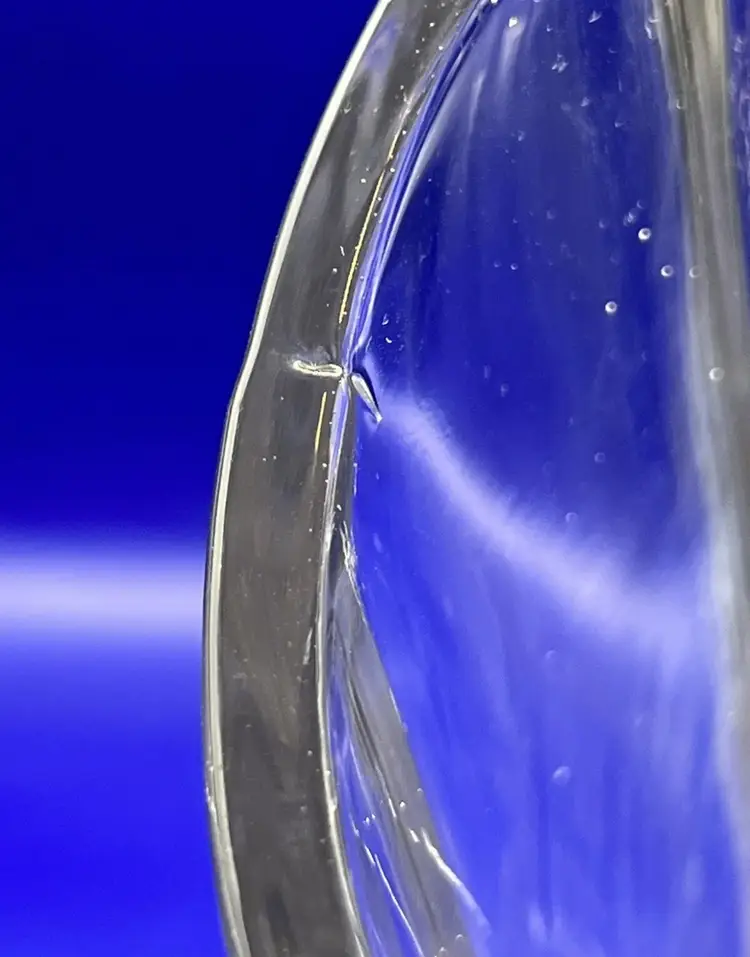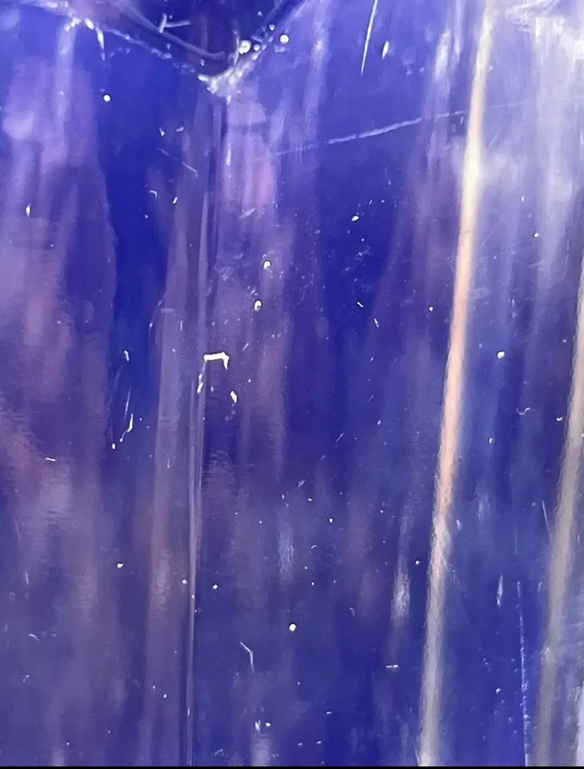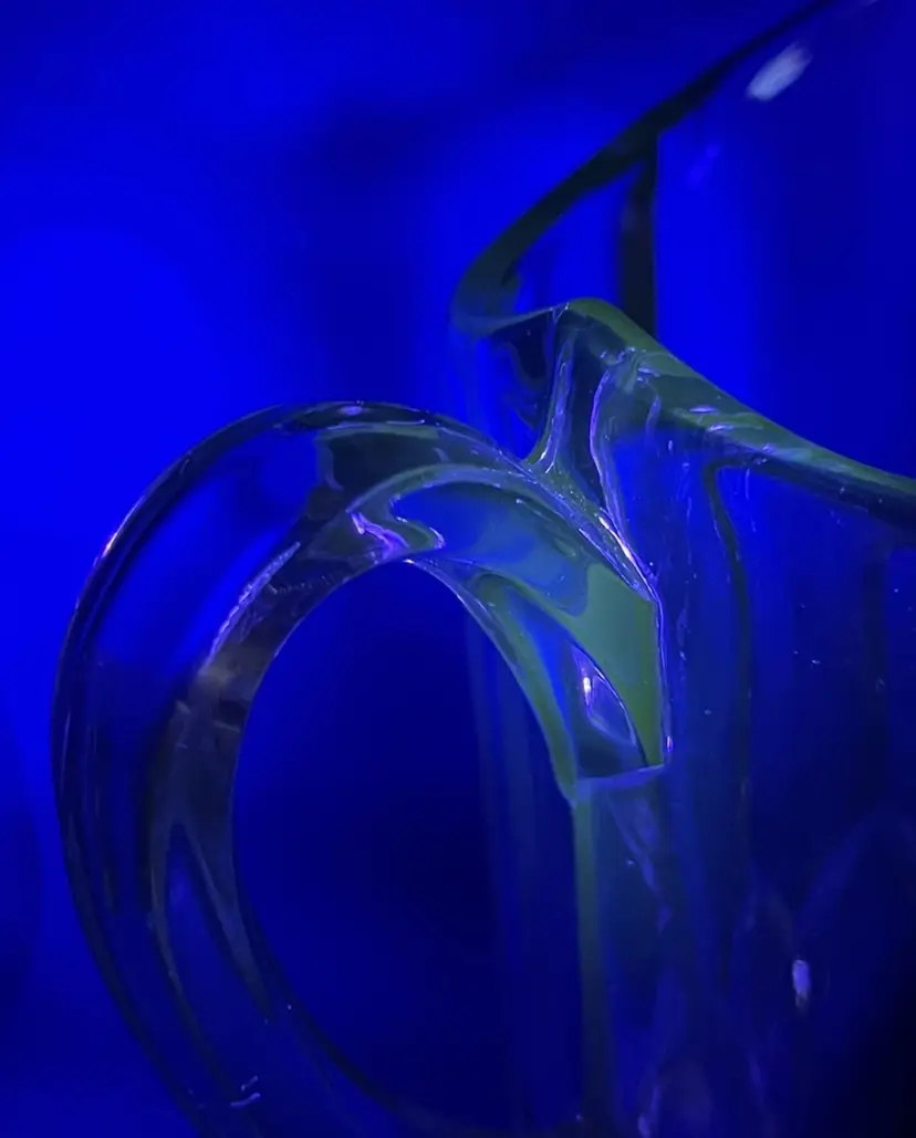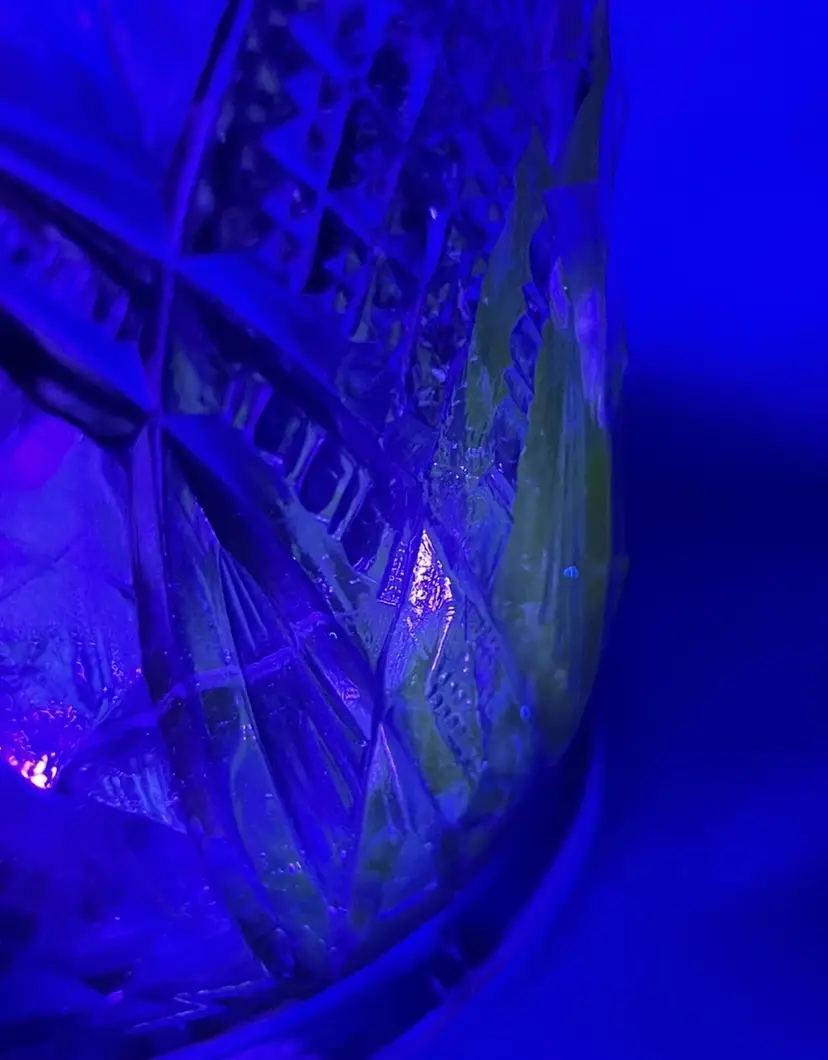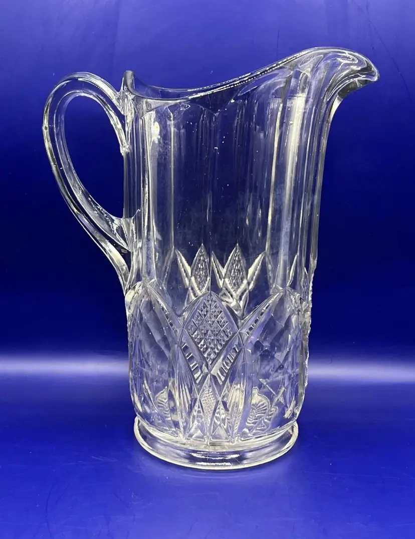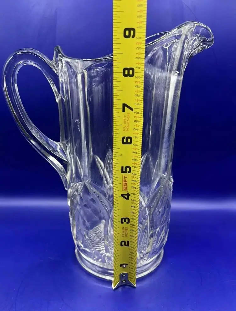 No chips. Has a lot of scratches and some lines inside the glass as well as some indents on the rim that are smooth. There is some cloudiness to the glass in some areas. Very similar to Duncan & Miller’s King Arthur pattern.
