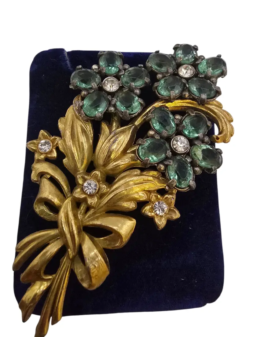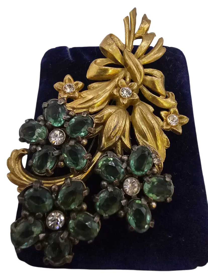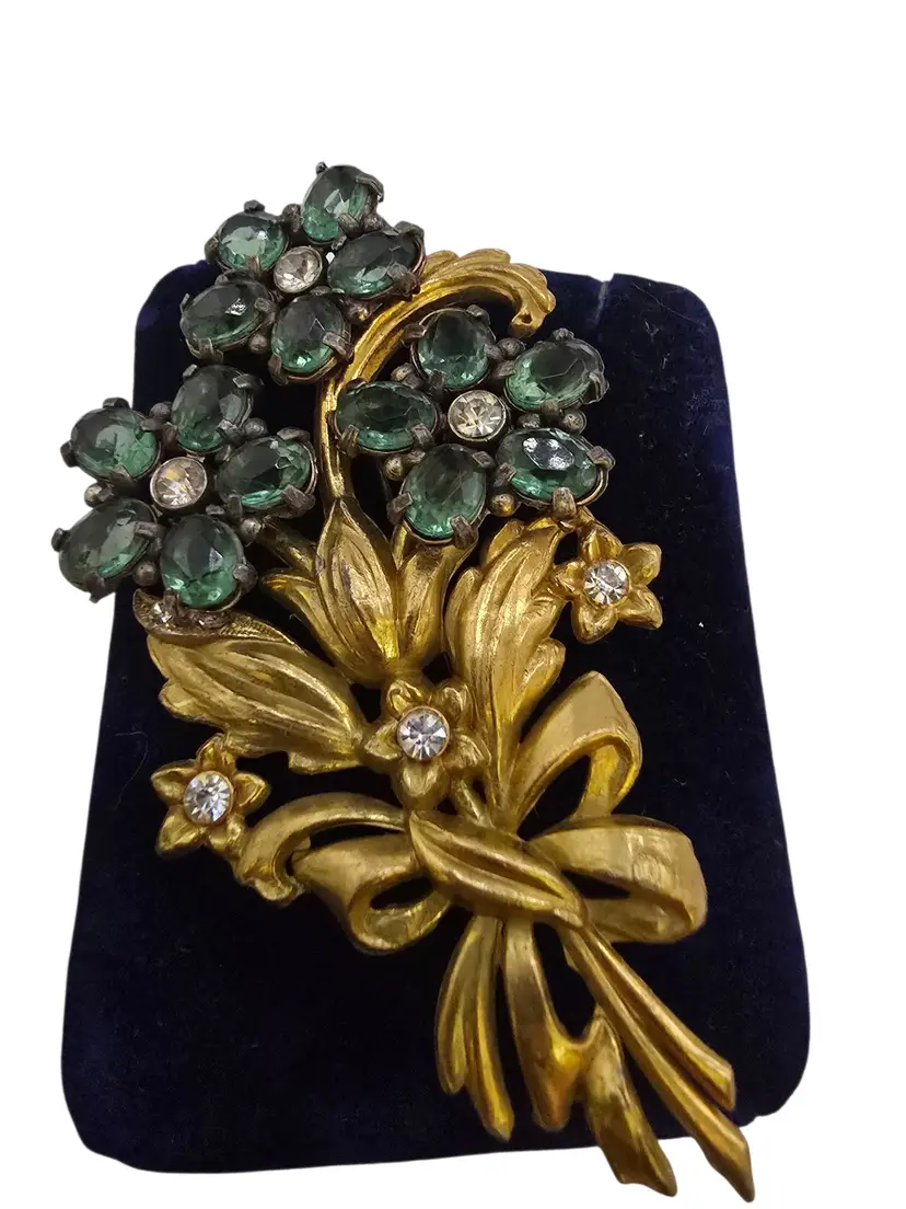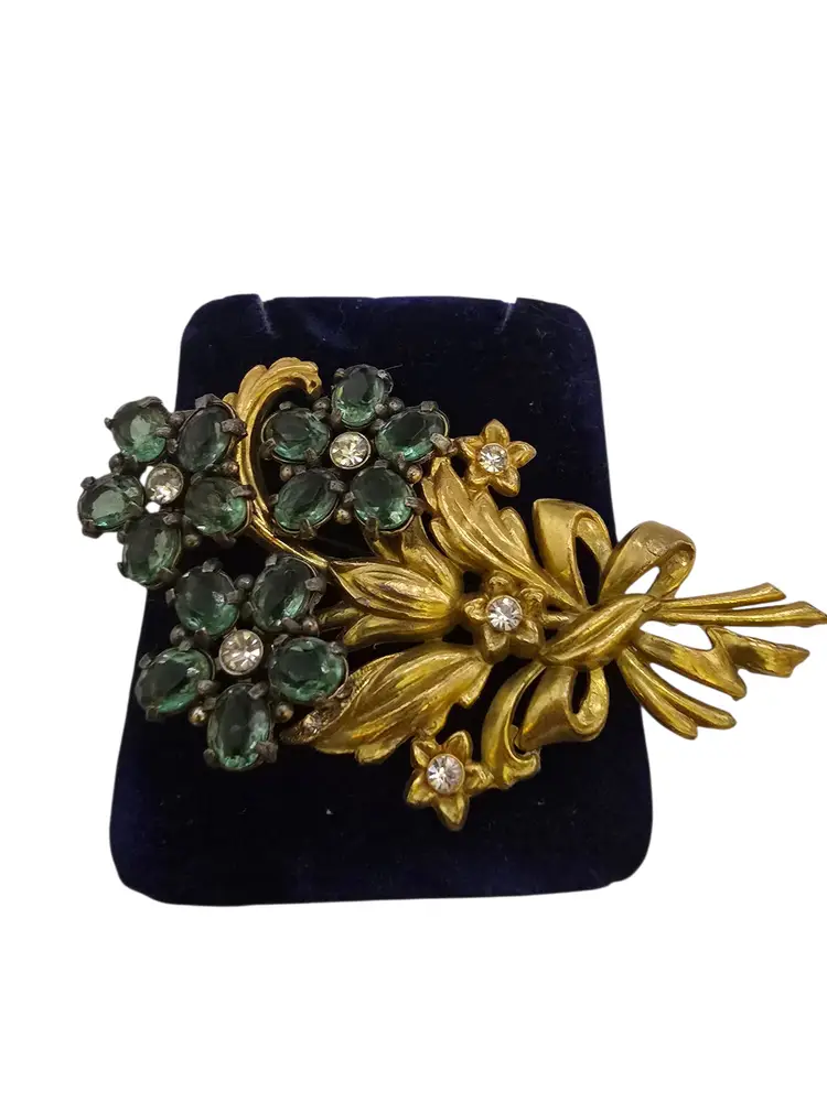 Size: 3.5" Color: Gold, Green Condition: Very good condition Signed: None Details: Beautiful stone, heavy and well made.