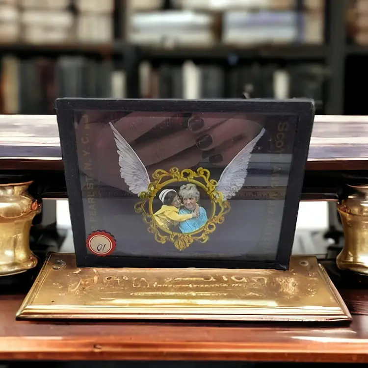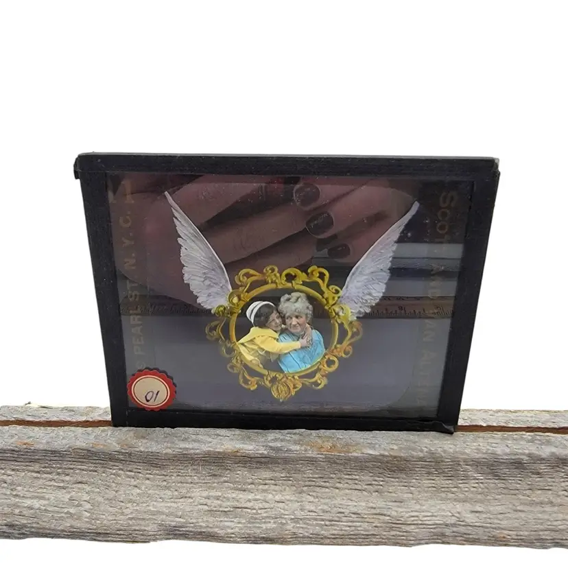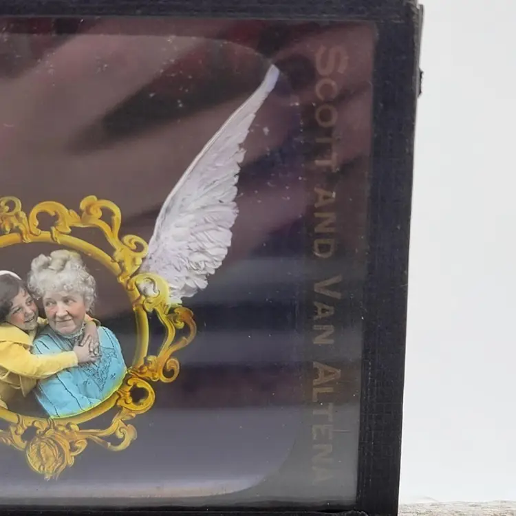 This is an antique glass Magic Lantern slide titled "There's Nothing Like a Mother's Love" by Scott and Van Altena of New York City Condition: good condition for age, the taping around the slide does have a spot where its coming off, but normal given it's age. Measurements approximately: 4" long, 3.25" tall.