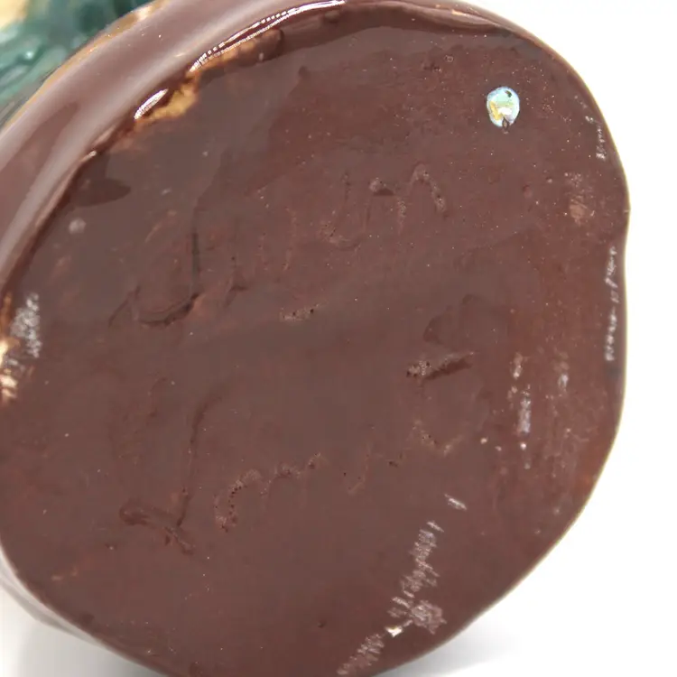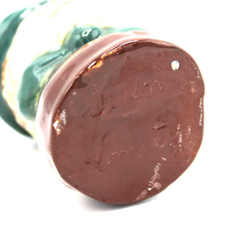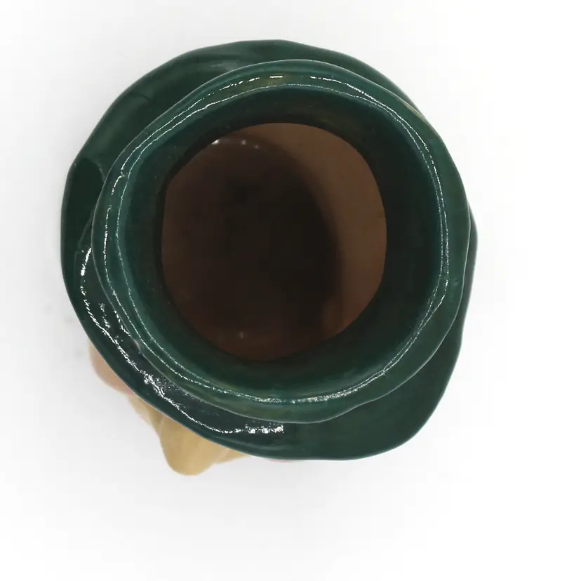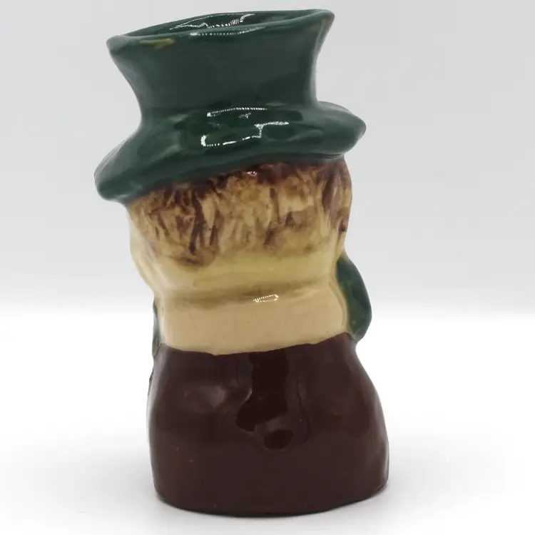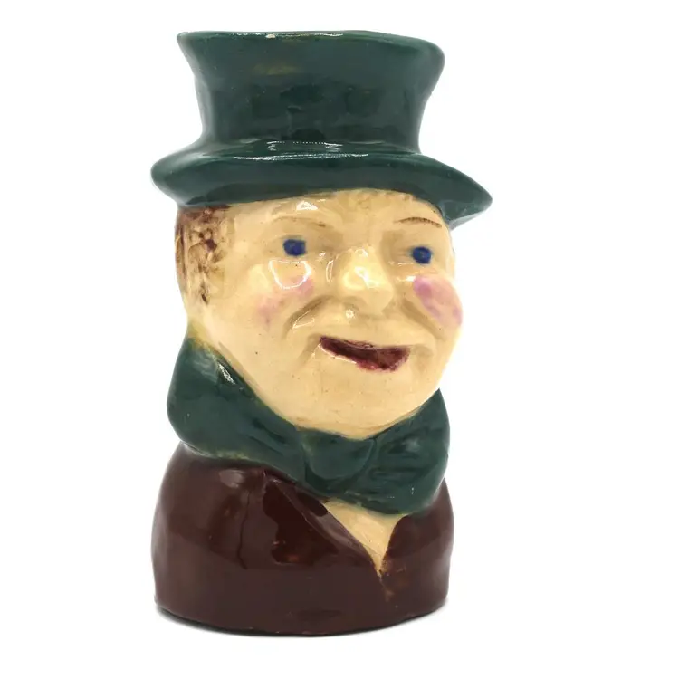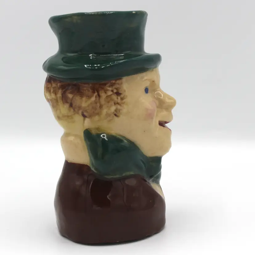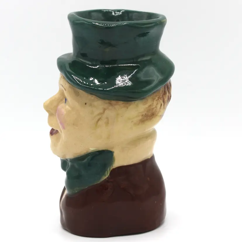 Antique vintage Toby Style Jug Hand Crafted Hand Painted Pottery English Man with a Cheery Disposition Wearing a Green Top Hat and Scarf reminiscent of Charles Dickens era No handles - can also be used as a small vase Signed by the artist