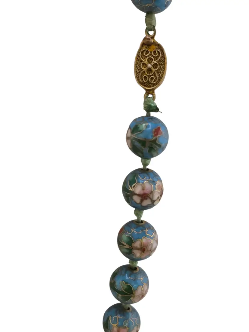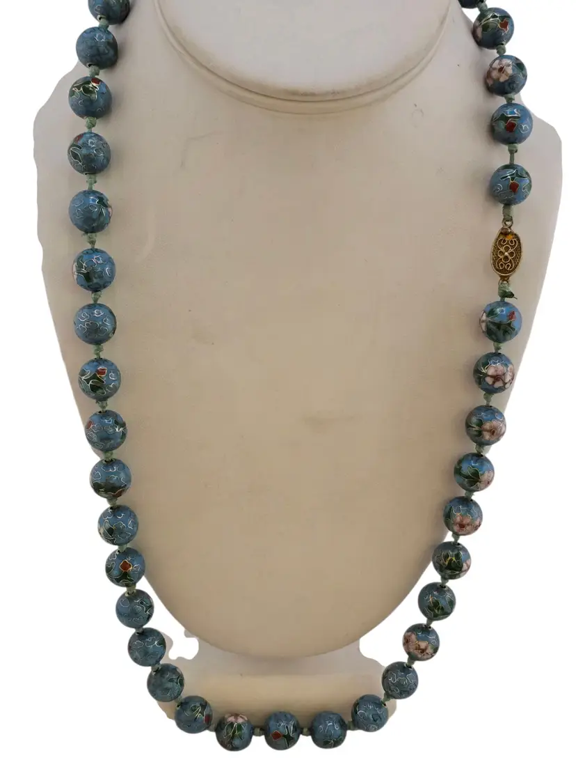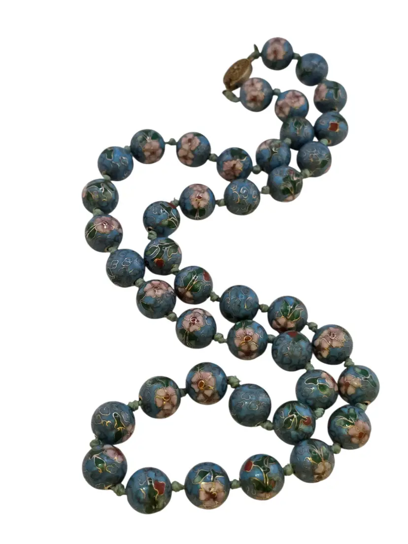 Antique Hand-Knotted Blue Cloisonne Necklace (A9088)