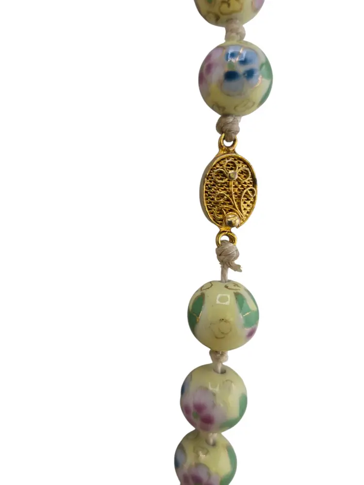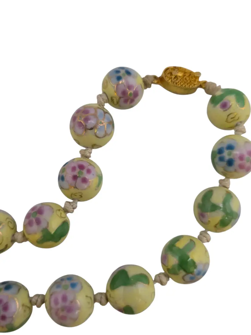 Antique Hand-Knotted Yellow Cloisonne Necklace (A9088)