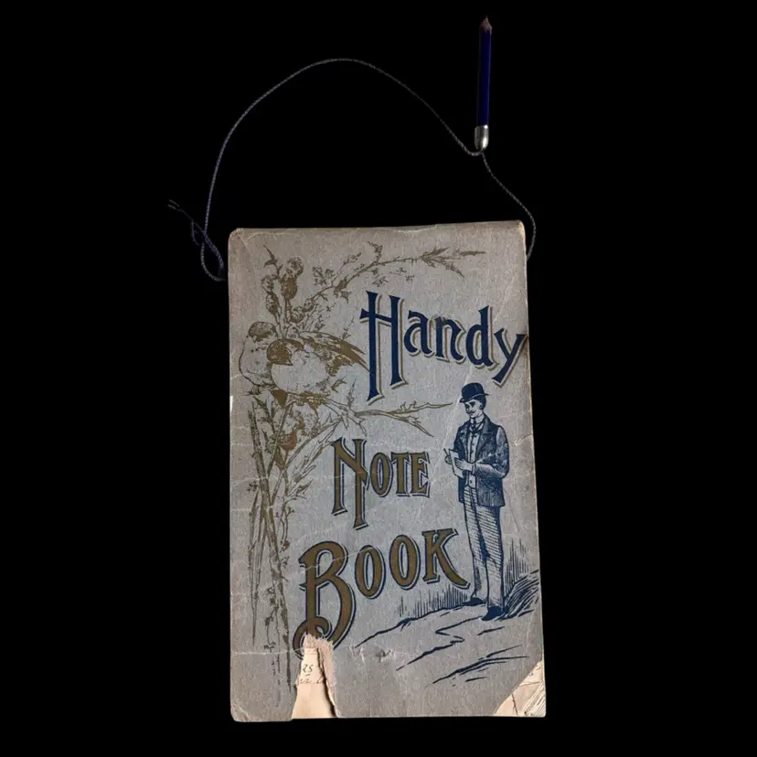 Handy Man notebook with pencil, first date written is 1912, amazing! Written in, appears to contain expense list. In vintage condition, has damage as seen in photos 4x6.25”