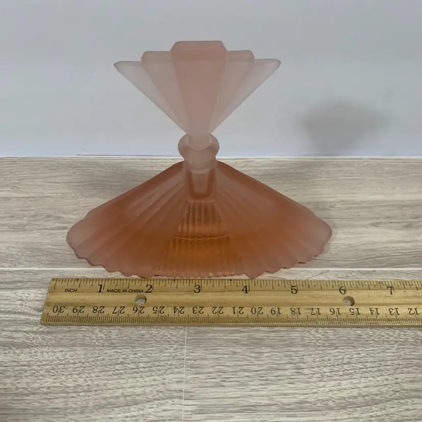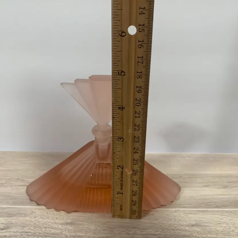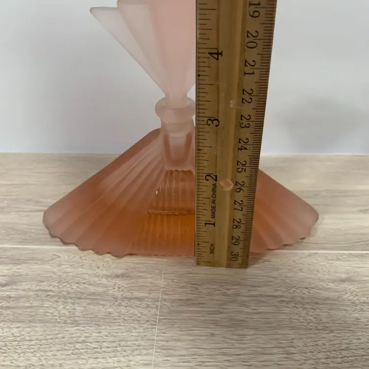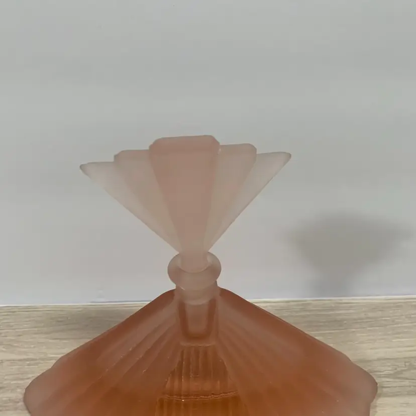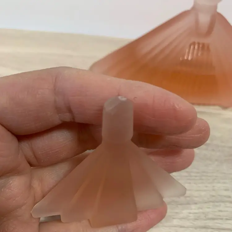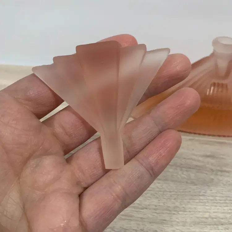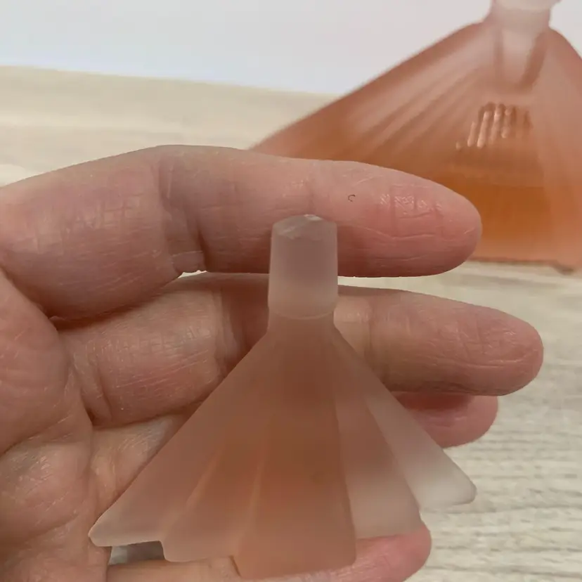 Antique Hollywood MCM Frosted Pink Satin Glass Perfume Bottle With Stopper