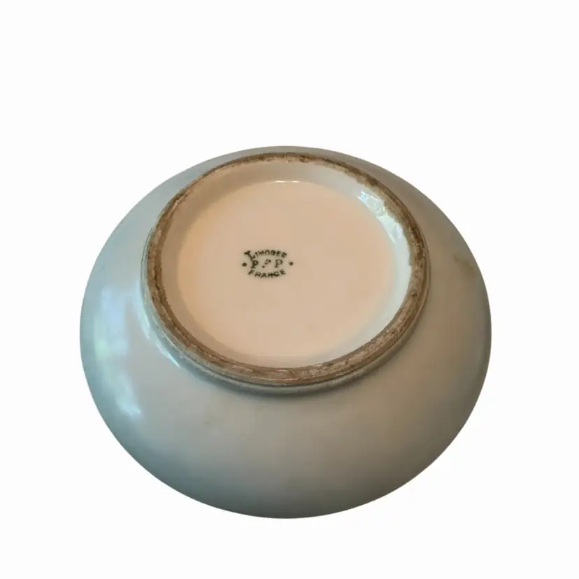 Antique Limoges Porcelain Round Trinket Dish Keepsake Holder Dresser Box Powder Vanity Box Hand Painted Flowers France powder blue hand painted P&P France