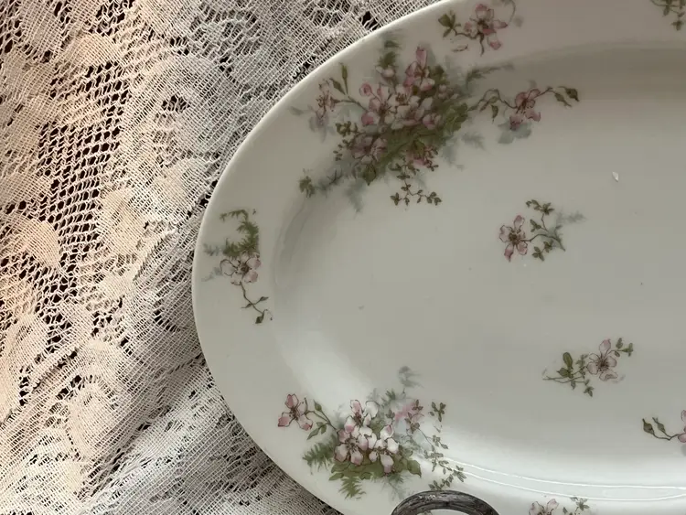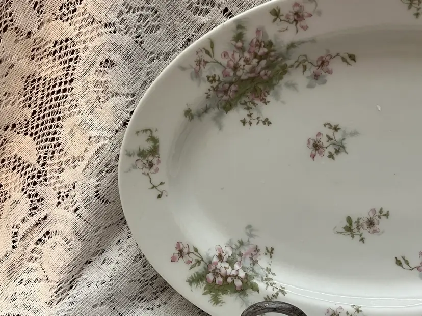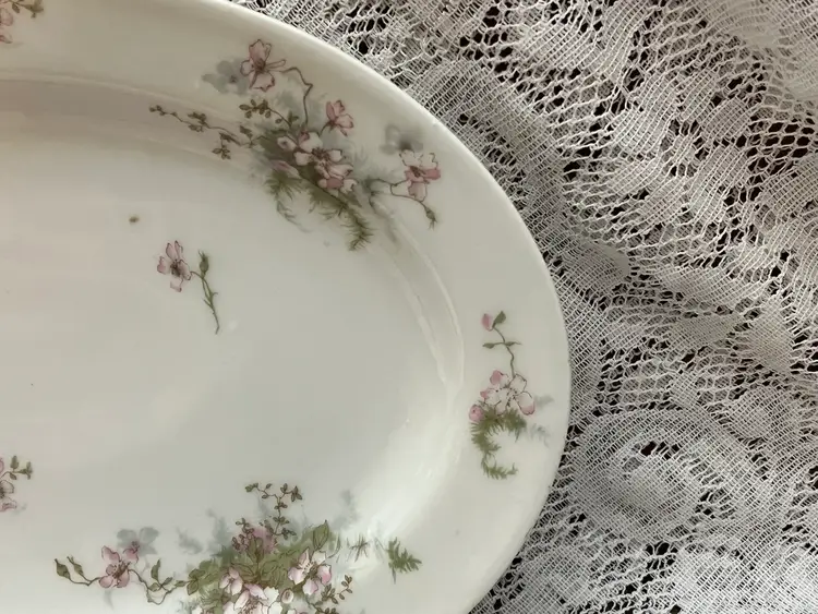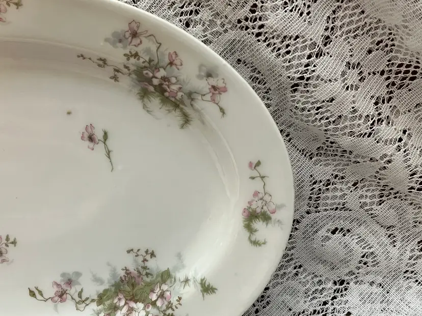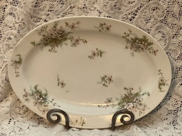 Platter measures 13.5”x9.25”x2”. It is stamped on the back “Theodore Haviland Limoges France” in burgundy lettering. There are no chips or cracks. If you have any questions, please msg me Thank you GIFT WITH PURCHASE!🎁