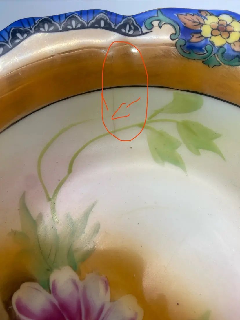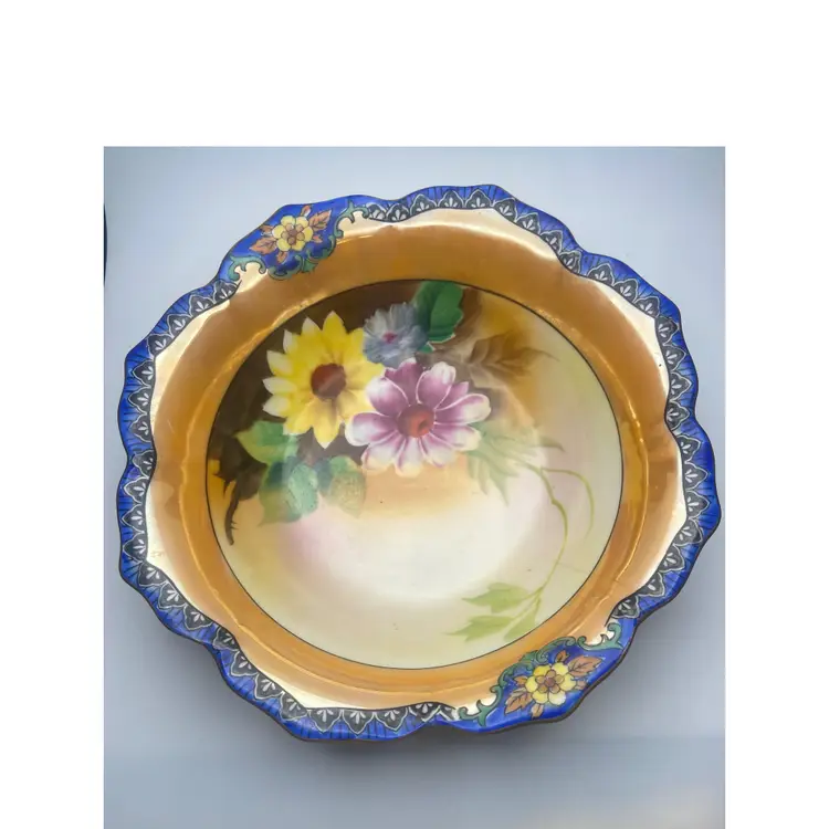 Crafted in the 1930s, this antique Noritake serving bowl is a testament to the artistry of the era. The piece features a delicate floral pattern, hand-painted to perfection, that brings a touch of elegance to any table setting. Its round shape and vibrant multicolor design make it a standout piece, sure to be a conversation starter at your next gathering. The bowl measures 8.25 inches in diameter and stands 2.25 inches tall, weighing in at a comfortable 13.5 ounces. Made from high-quality porcelain, this serving bowl is not only visually appealing but also durable. Its origin from Japan adds an exotic flair to its already rich history. Whether used for special occasions or displayed as part of a vintage collection, this Noritake bowl is a true treasure. NOTE: Bowl has a hairline crack - see photos)