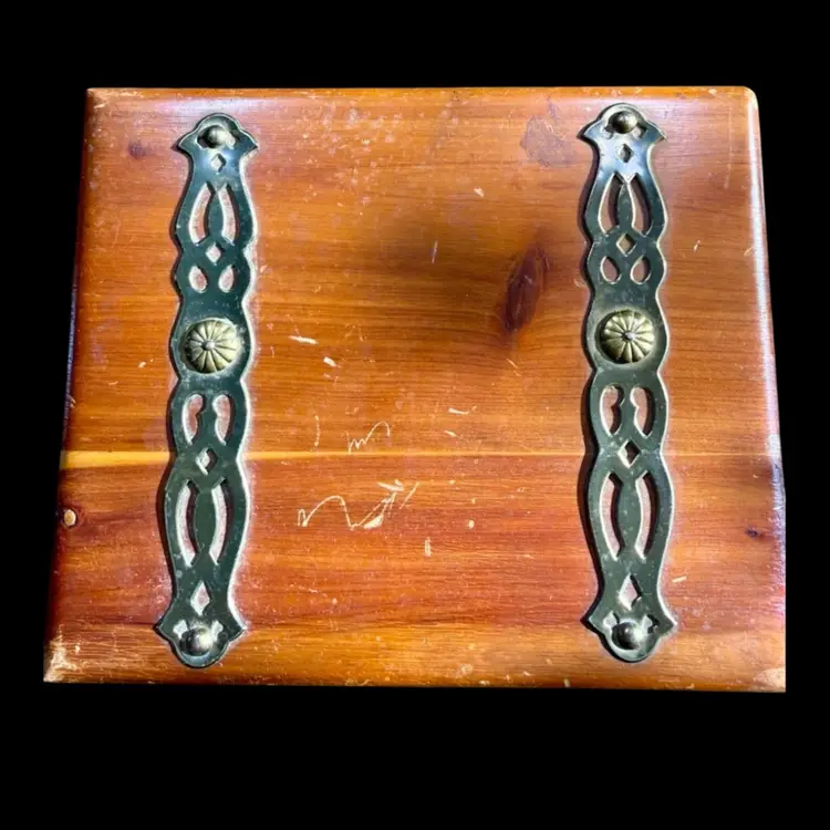 NOTE wood surface has some scratching as well as a splatter stain of some sort that doesn’t come off with a wet cloth. Needs a little TLC to refresh the surface! Does not include lock/key.