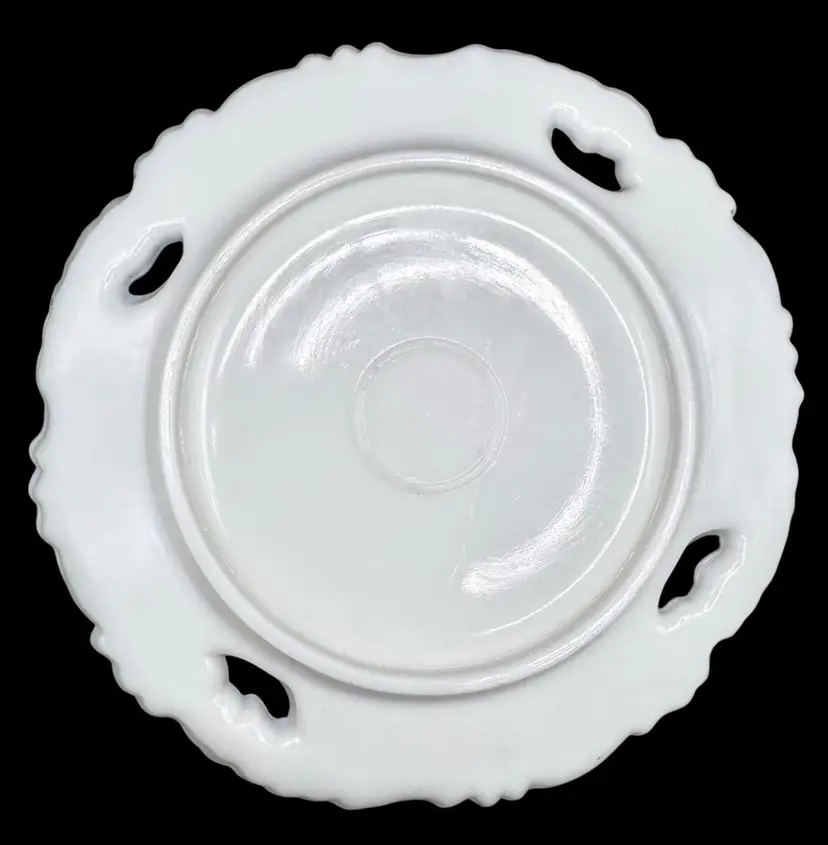 Antique plate with open lace design and gold florals around the edge.