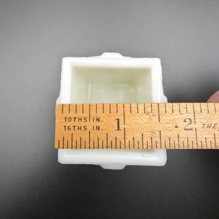Unmarked milk glass toothpick or match stick holder. Great antique condition no chips or cracks. Measures approximately 2.25 inches tall, 1.5 inches wide Thank you for looking and have a great day!