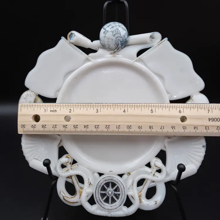 Unknown maker, marked with " PAT'D MAR.3.1904" . Good condition considering age. Significant wear on paint, debris in glass and bubble shown in pictures. No chips or cracks. Measures approximately 7 inches in diameter. Thank you for looking and have a great day!