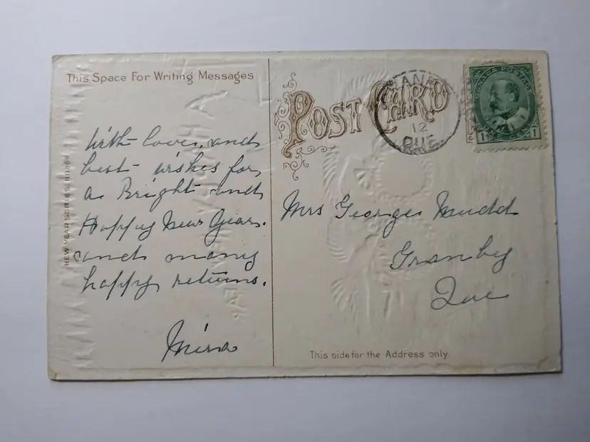 Unit of Sale: Single Unit Era: Pre-War (Pre-1914) Original/Licensed Reprint: Original Occasion: New Year Postage Condition: Yes Features: Embossed, Divided Back Subject: Artist Material: Paper Theme: Art, Fantasy, Holiday, Greetings Time Period Manufactured: 1900-1919 Type: Printed (Lithograph) Artist: Unknown Country/Region of Manufacture: Unknown Year Manufactured: 1910