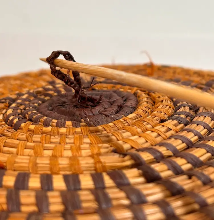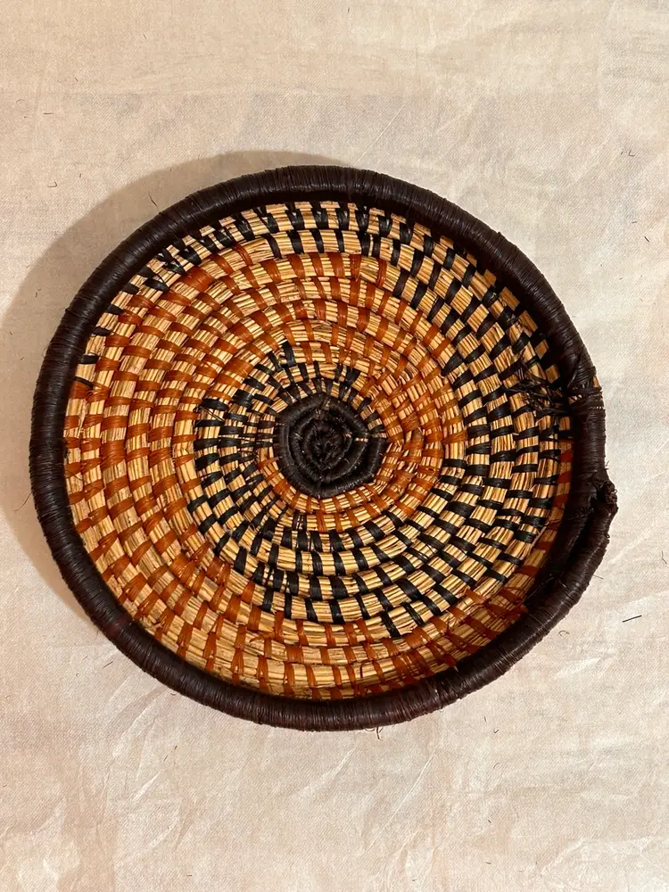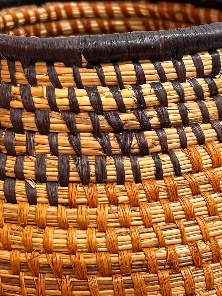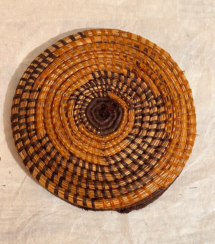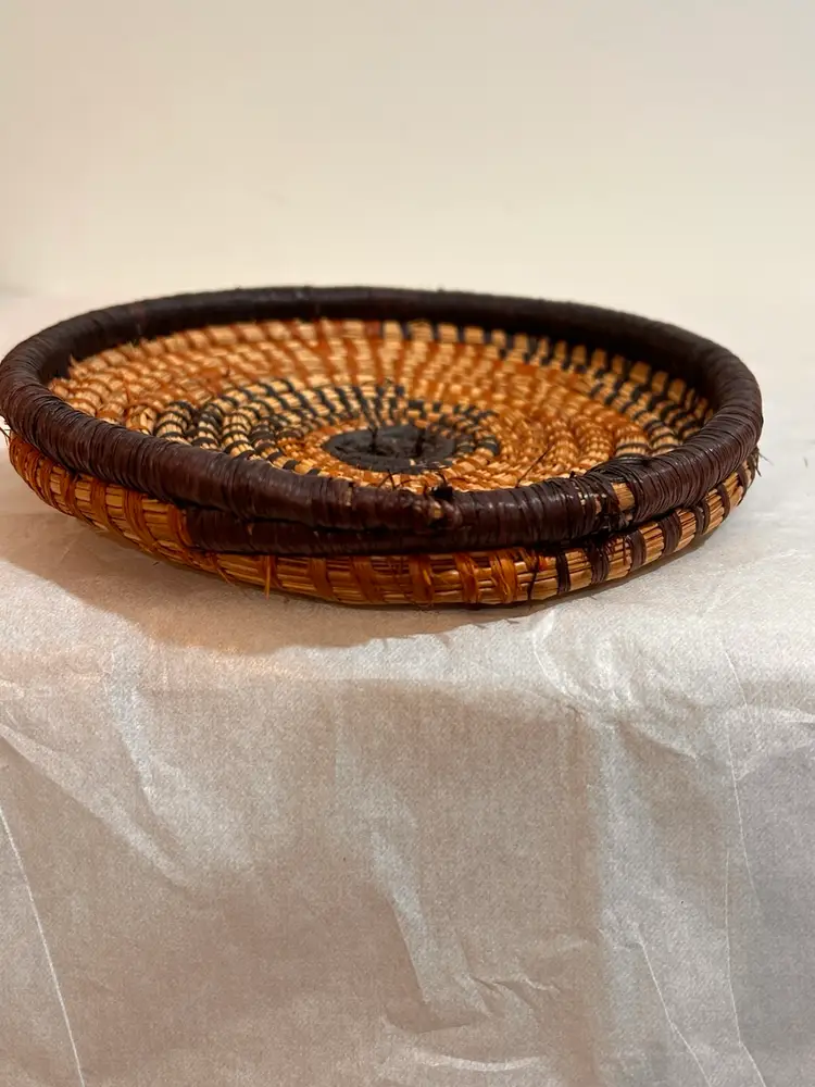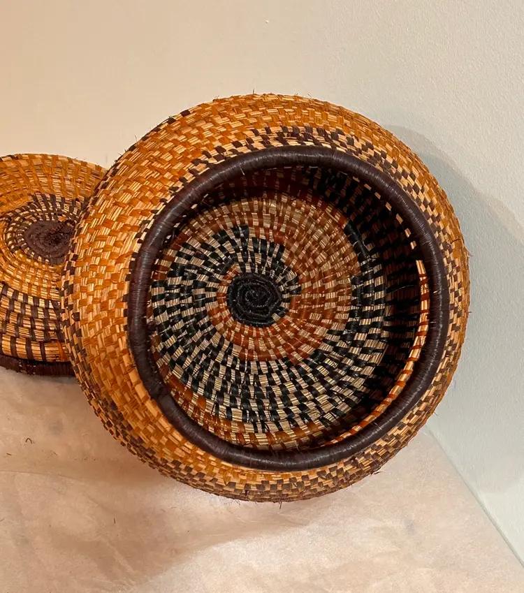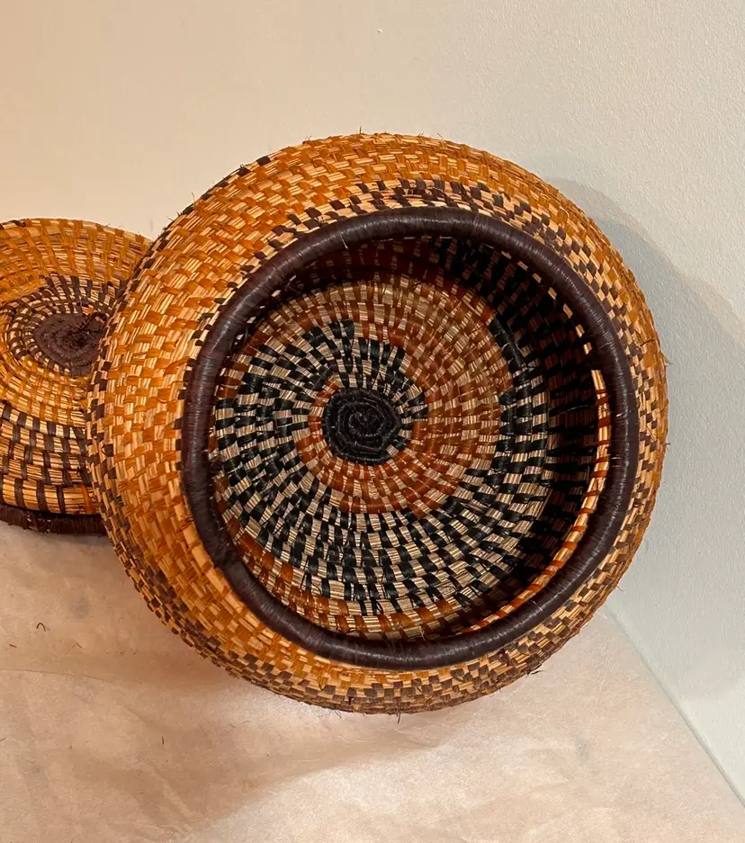 This intricately crafted basket is of Native Northeast American Indian Culture. Materials used are from pliable, strong splints (thin layers) carefully separated from the wood of the Black and Brown Ash trees. Key Characteristics: The material itself has an inherent "ash" characteristic to its natural woody scent. The basket colors creates a beautiful contrast of light and dark ash wood. The ash splint basket is made from thin, pliable strips of each wood creating delicate yet strong baskets, sometimes so fine they resemble threads. The culture traditionally pounded ash logs to separate these thin, flexible threads achieving very fine strands for weaving. Its provenance from a Northeast State flea market adds a unique and authentic touch to this collectible item, making it a valuable piece for collectors interested in Native American art and craftsmanship. This basket has been well kept overtime. Please see all pictures for an additional description of this fine basket including measurements. **my listings consist of other Cultural Collections that may possibly interest you.