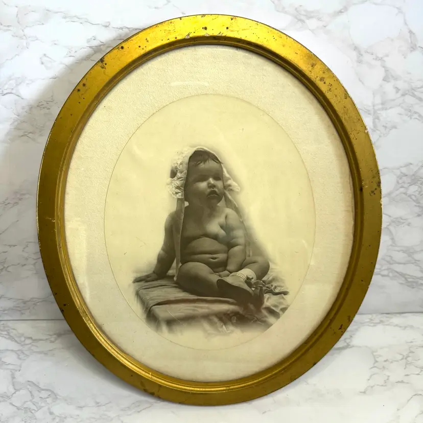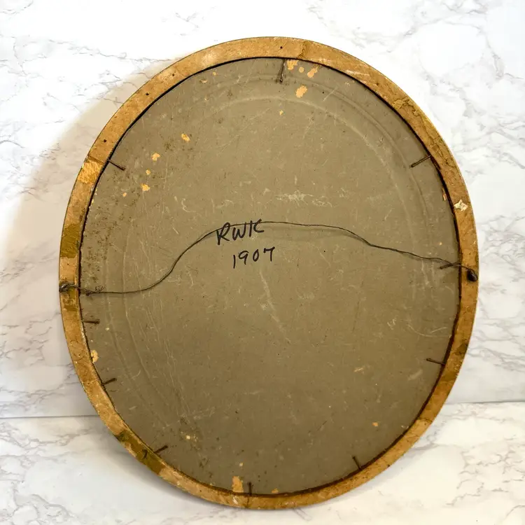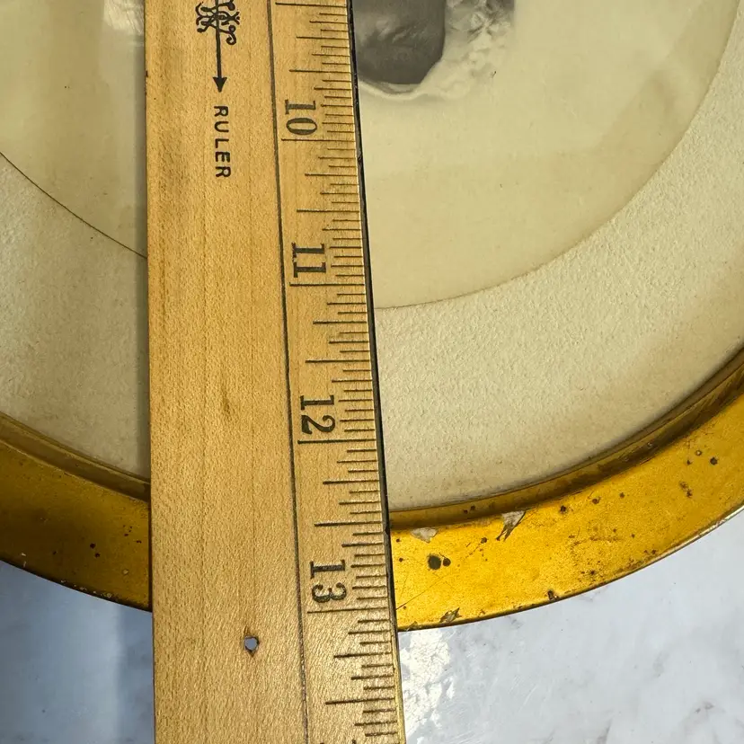 Dated on back 1907. Good antique condition with minor rippling to the photo inside the frame and wear to the frame itself. Measures about 11” x 13.25” overall size