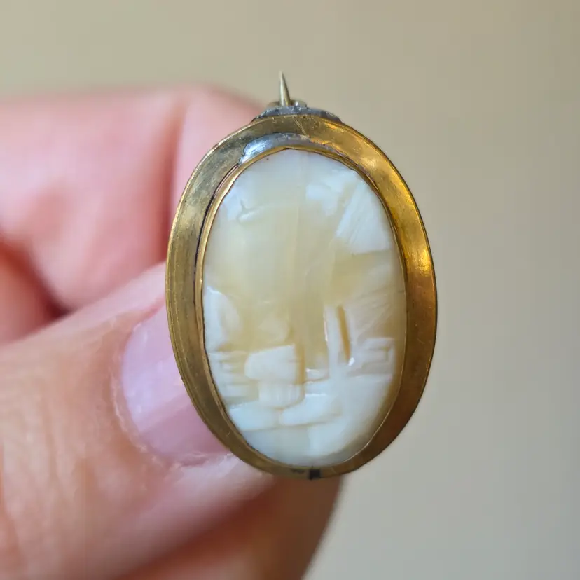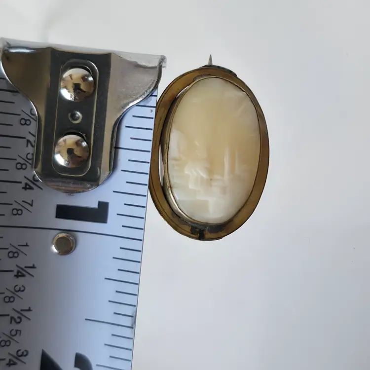 Please review photos carefully prior to purchase Measurements are approximate Parts of cameo appear worn down Has discoloration