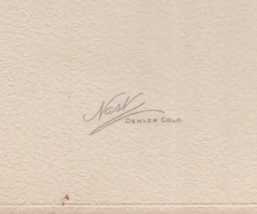 This is in a presentation folder, has wear along edges. The print size is 4 x 6, and is lifting one side a bit. When open is 13 wide. Closed, 7 x 11.