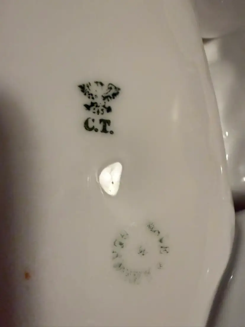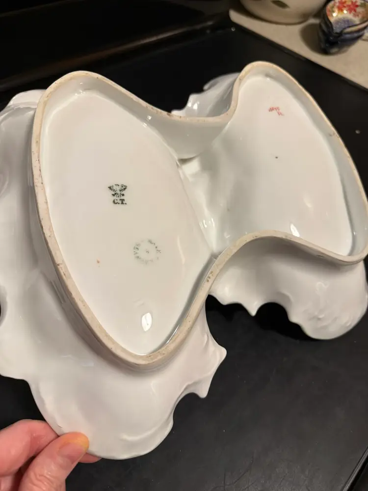 This is an antique German porcelain "lobster dish," popular during the late Victorian era and early 20th century. It was manufactured by Carl Tielsch (C.T.) in Altwasser, Silesia (now Wałbrzych, Poland).