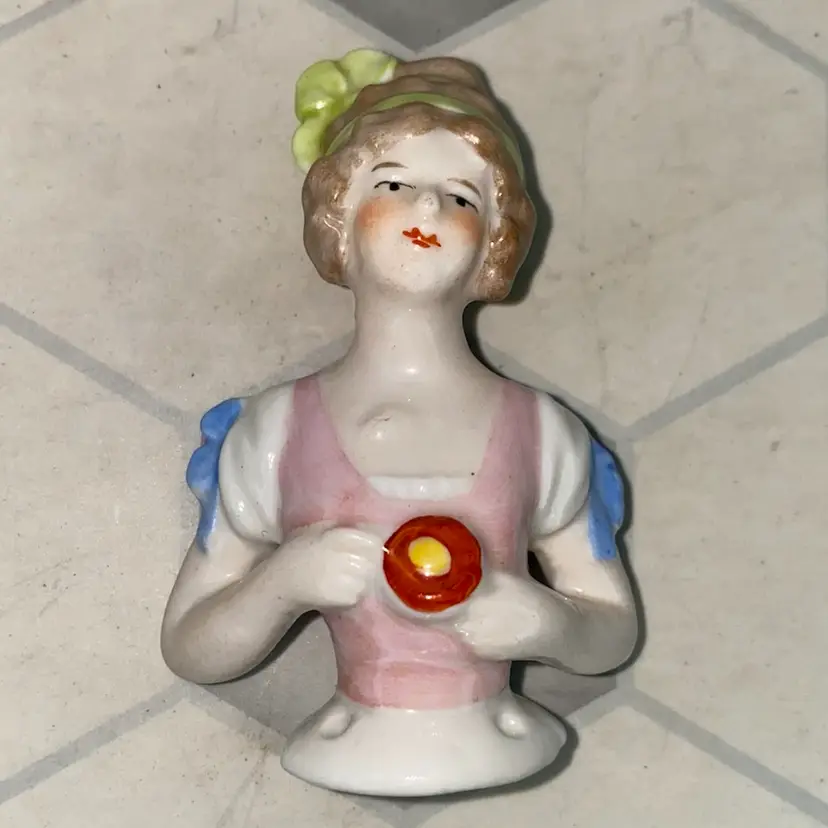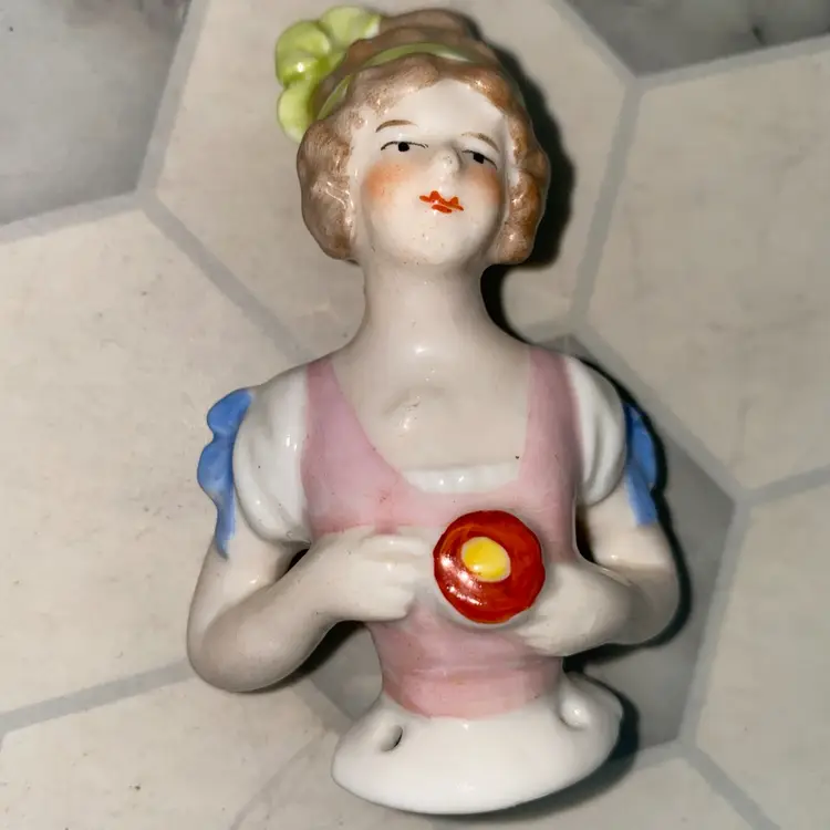 •antique (1910-20ish) porcelain bust for a pin cushion doll, marked with number on back