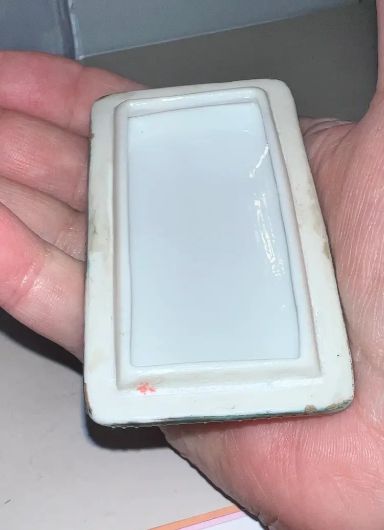Box is 3” by 1 5/8”. Dish is 5 1/4” by 3 1/4”.
