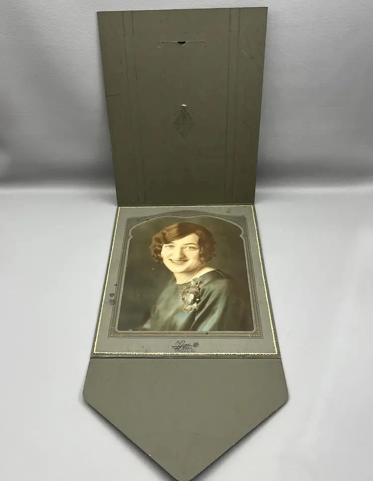 Antique Portrait Photo Color Woman Blue Eyes Brooch The Duke Little Rock AR Arkansas 1920s Photo with cardboard frame is 9x12"