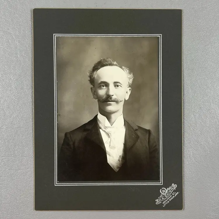 Antique Portrait Photo Little Rock Ark. HA Shinn Man Large Mustache Suit Total size 5.75x8.75"