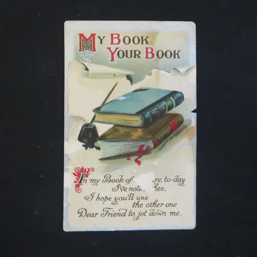 In my Book of memory, to-day I've noted thee, I hope you'll use the other one Dear Friend to jot down me.