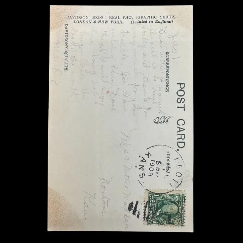 Beautiful card, good antique condition. Marked and posted 1908. Made in England.