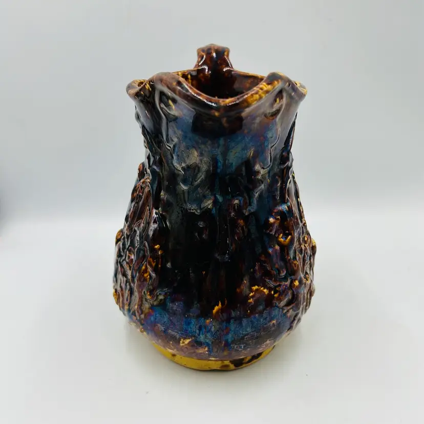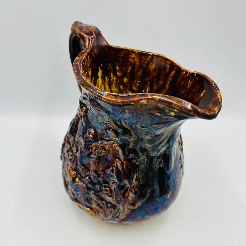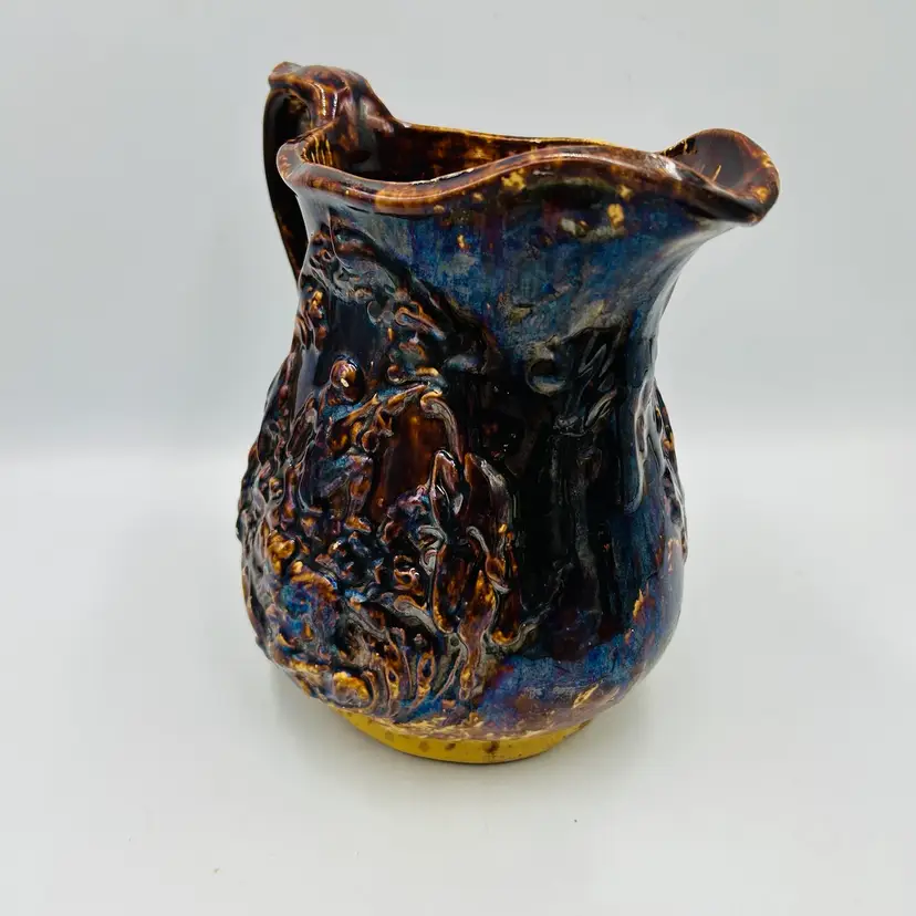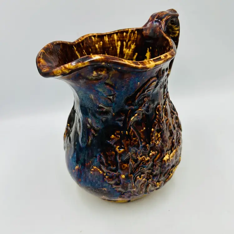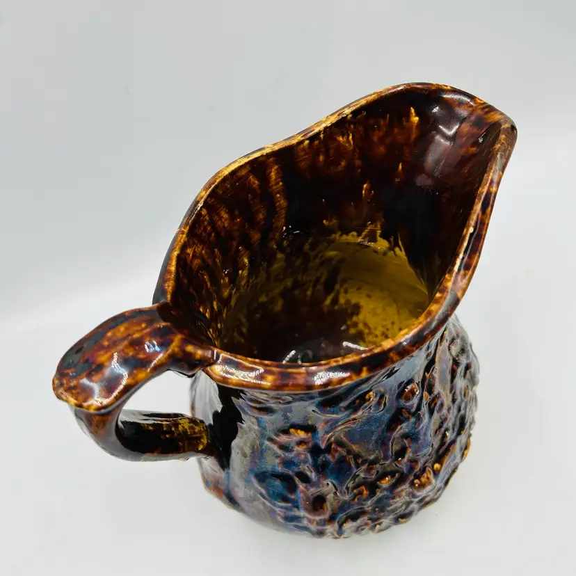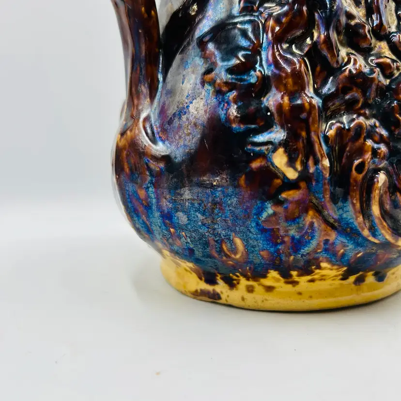 Has a nice dark heavy glaze with a bit of iridescence