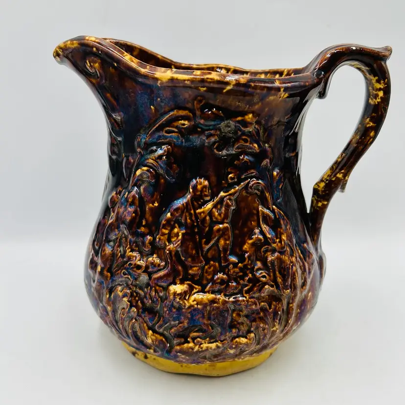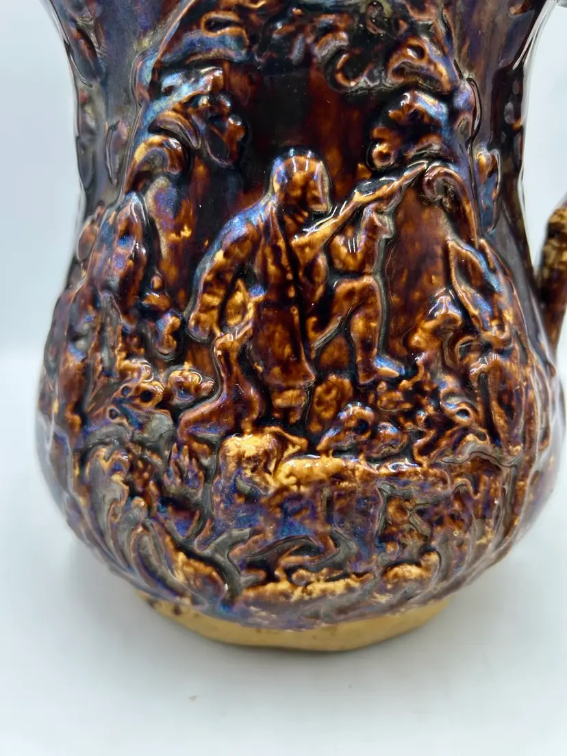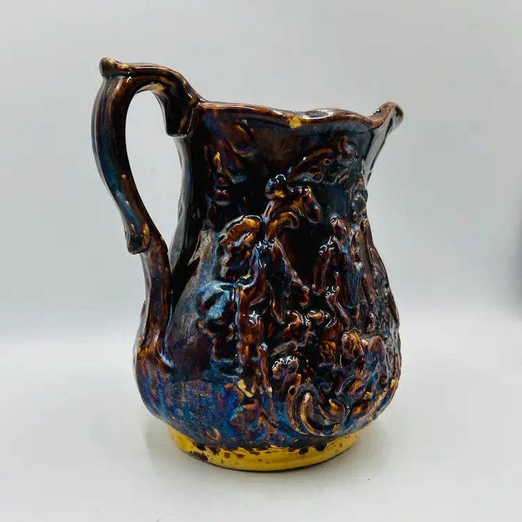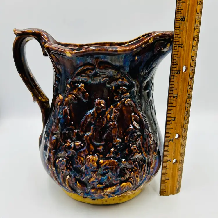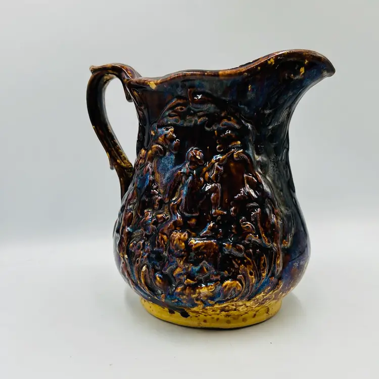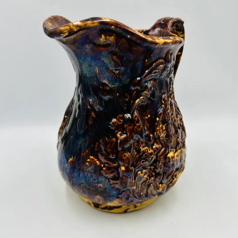 Has a nice dark heavy glaze with a bit of iridescence