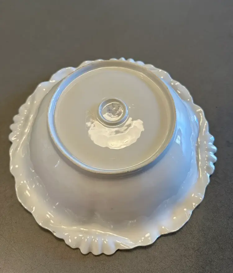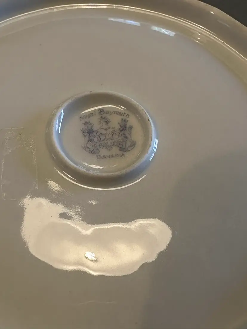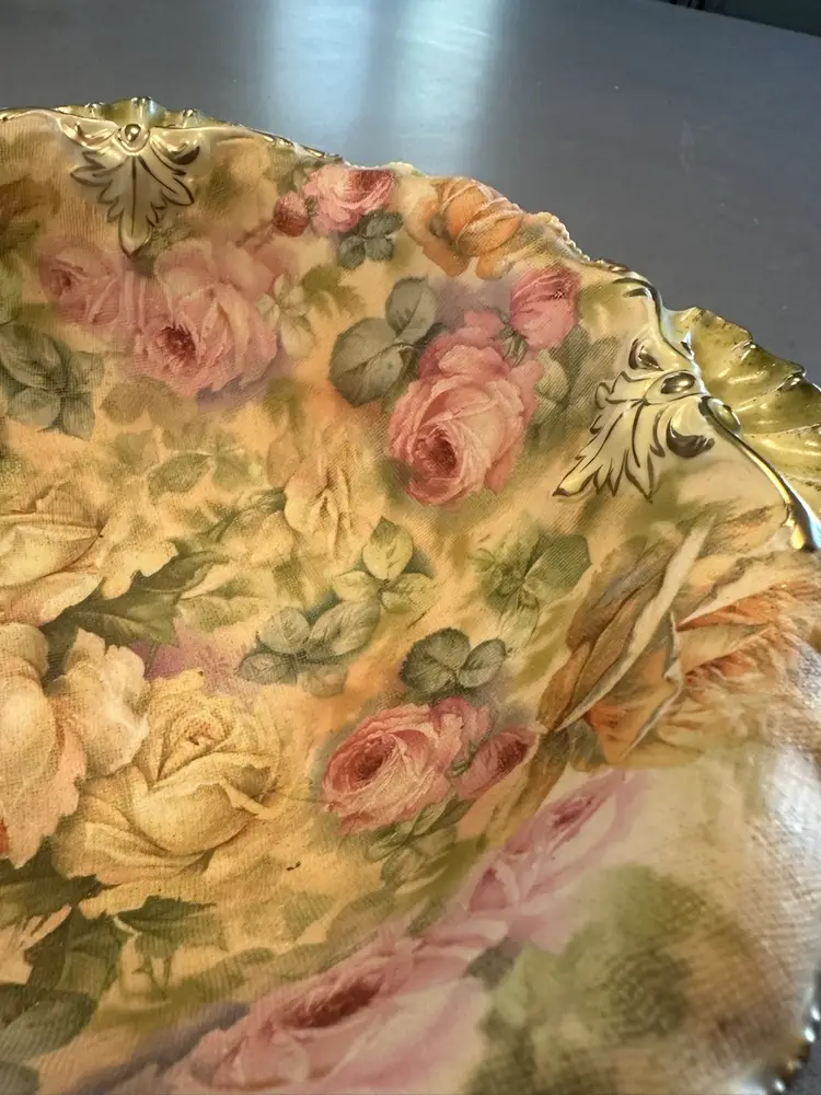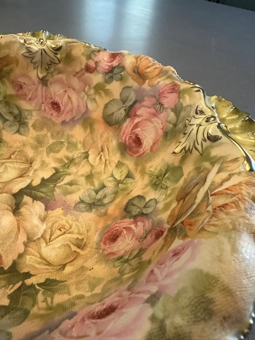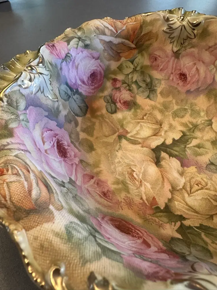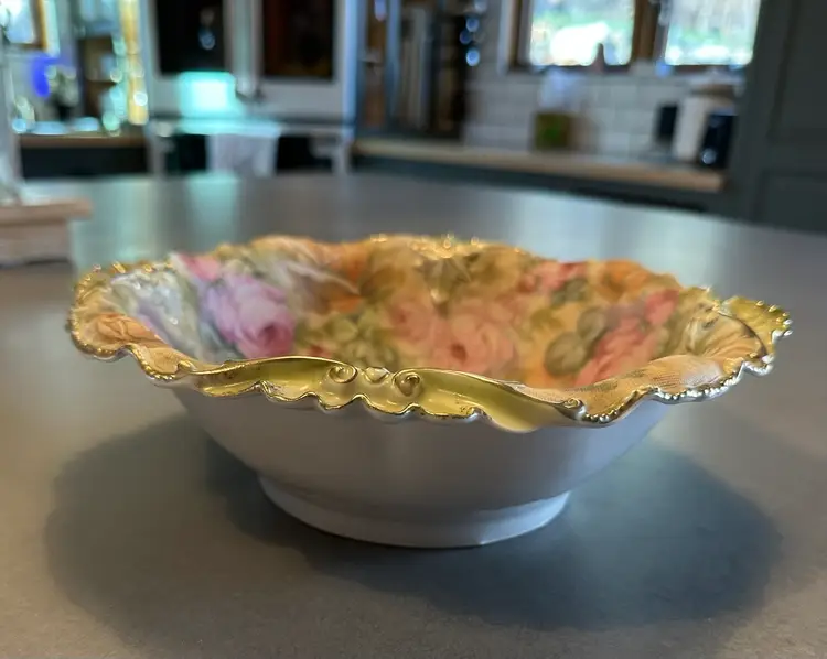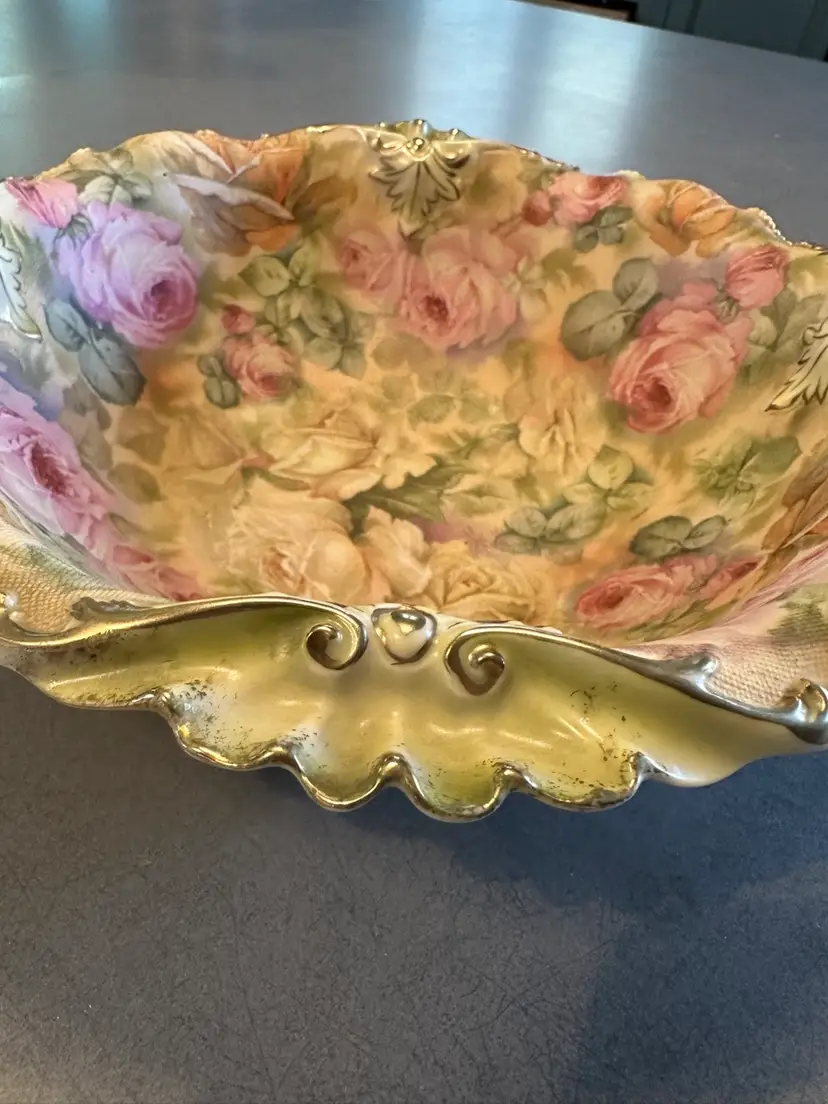 Gorgeous antique Royal Bayreuth porcelain bowl from the rose tapestry series. It is 11” across x 3”. It is in excellent condition, no chips, cracks or repairs.