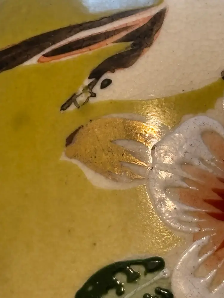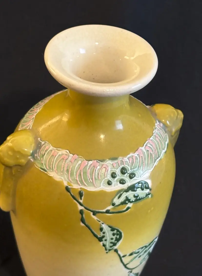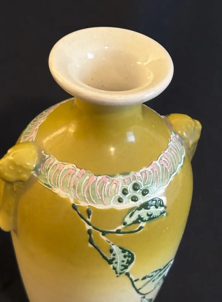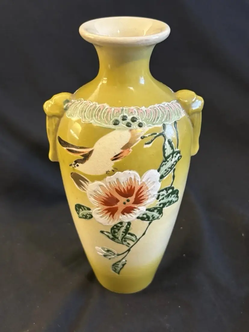 This is a stunning, hand-painted Japanese art vase from around 1900. It has gold gilded accents and enamel.