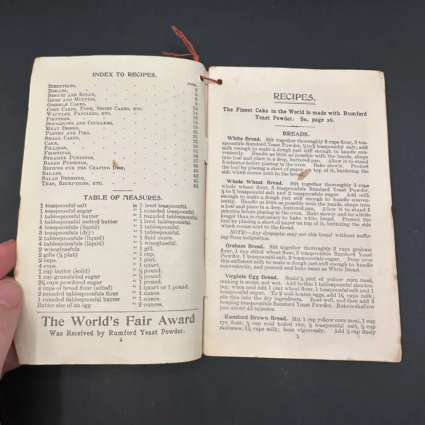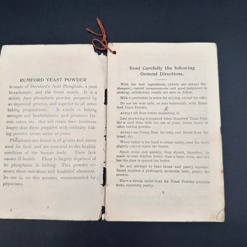 The booklet features recipes designed to be used with Rumford Baking Powder.