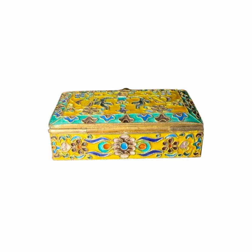 Details: • Approx. size: 2” long x 1” wide x 0.5” high • Material: Metal with enamel cloisonné • Origin: Russian (unmarked, style consistent with Russian cloisonné work)