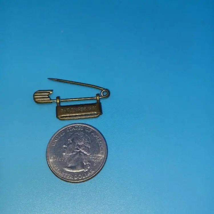 Antique 1885 safety pin this beautiful safety pin has a placard attached to the bottom that States patent June 23rd 1885 please see all pictures as they're the best description all items from a smoke-free home with pets experienced shipper