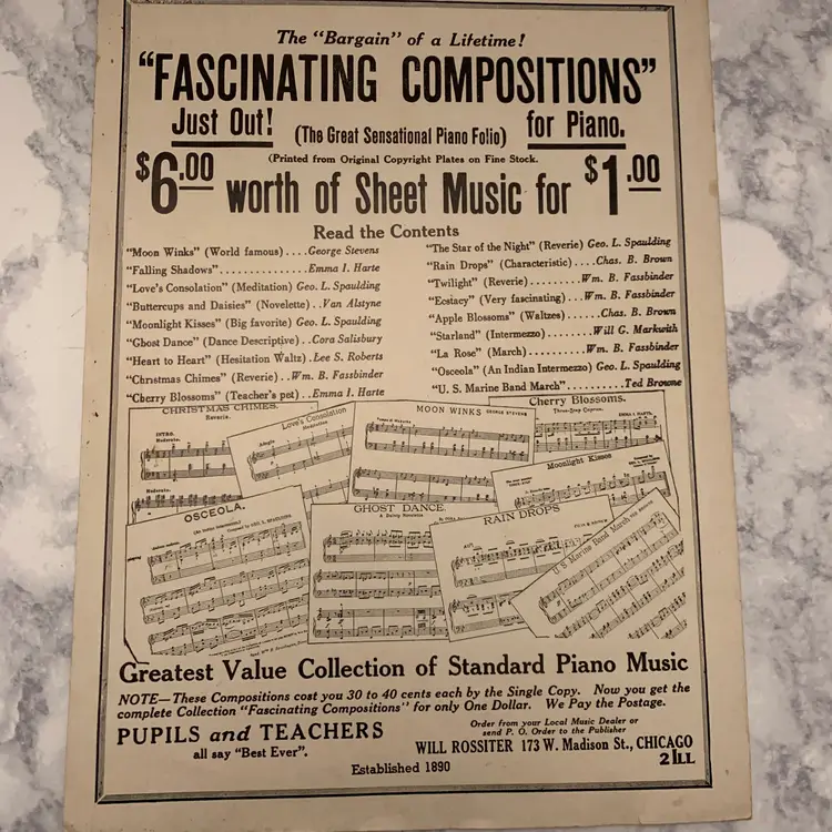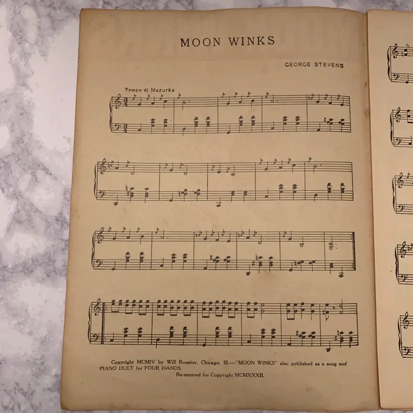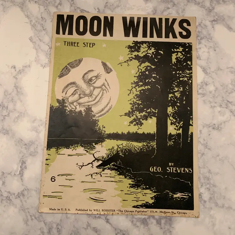 Antique sheet music for piano. "Moon Winks" Fantastic graphics, great for Halloween. Copyright 1904. Very nice condition for age, no tears or holes or creases.