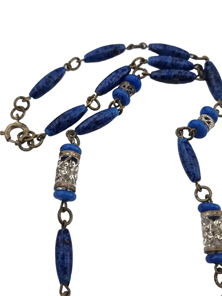 Size: 17" Color: Silver, blue Condition: Very good Signed: Czechoslovakia Details: Absolutely stunning. Signed on jumpring