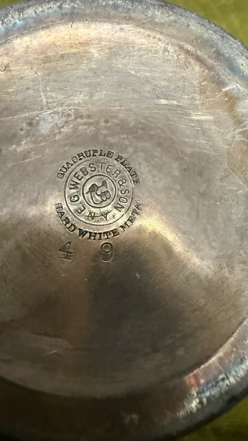 Items marked "quadruple plate" had a heavier layer of silver plating than standard items, making them more durable. Intricate etched details