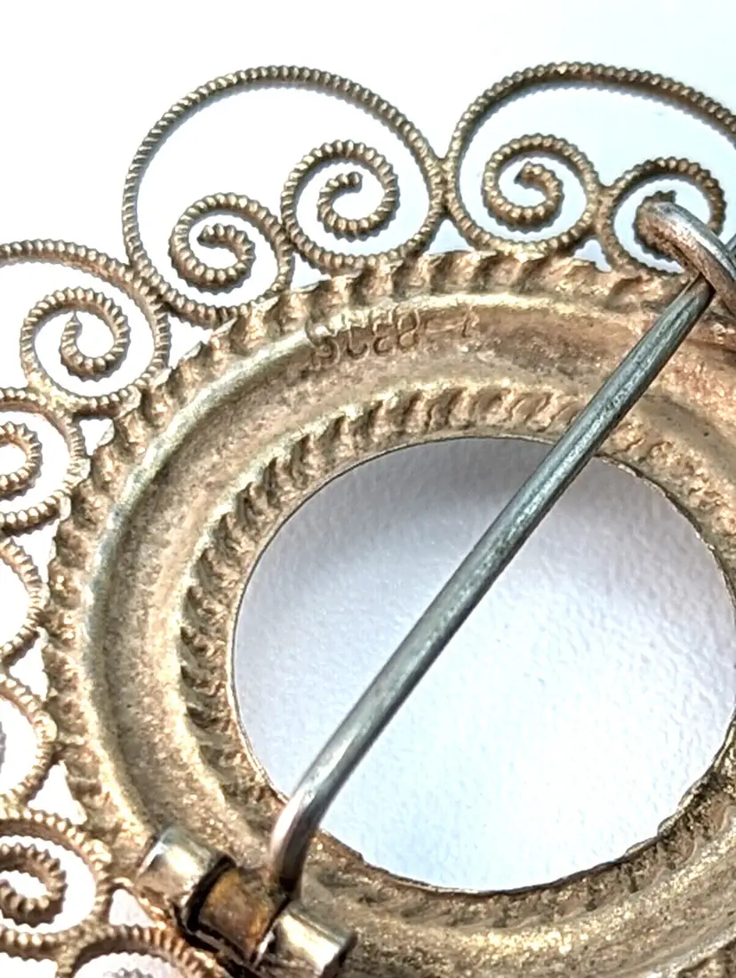 Antique Silver Solje Wedding Brooch with Tube Hinge and C Clasp Marked SC 88 Likely Mid 19th Century