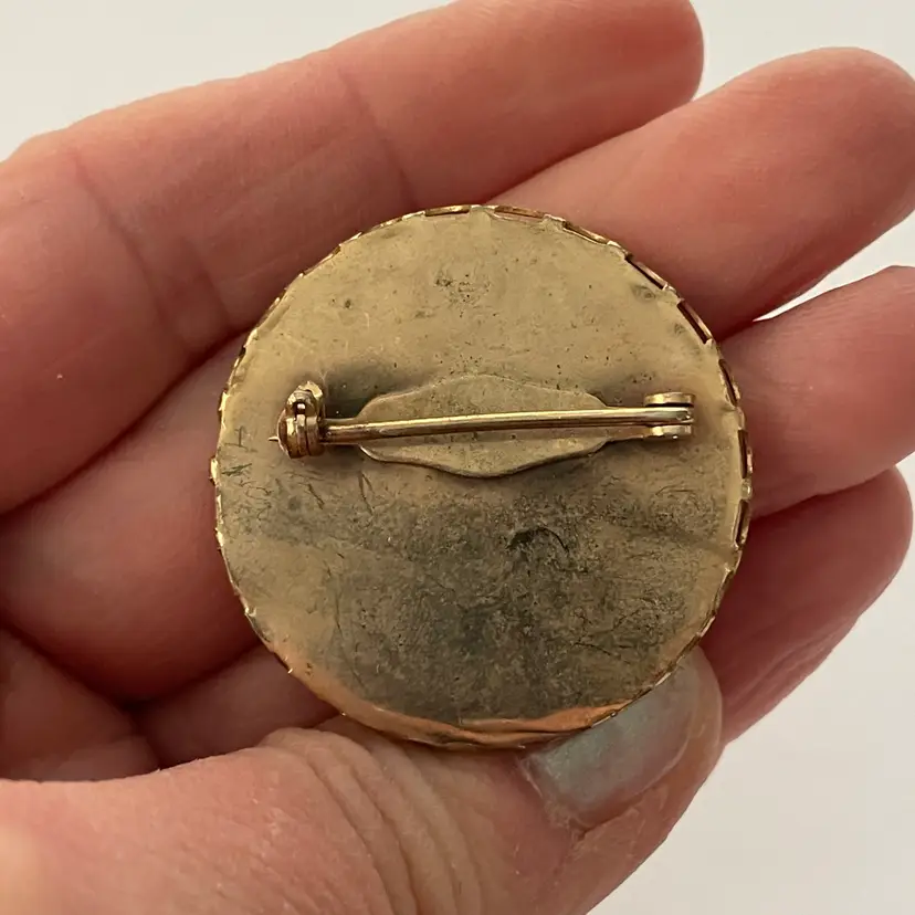 Antique transfer ware ceramic Santa Claus pin / brooch with brass surround - estate piece