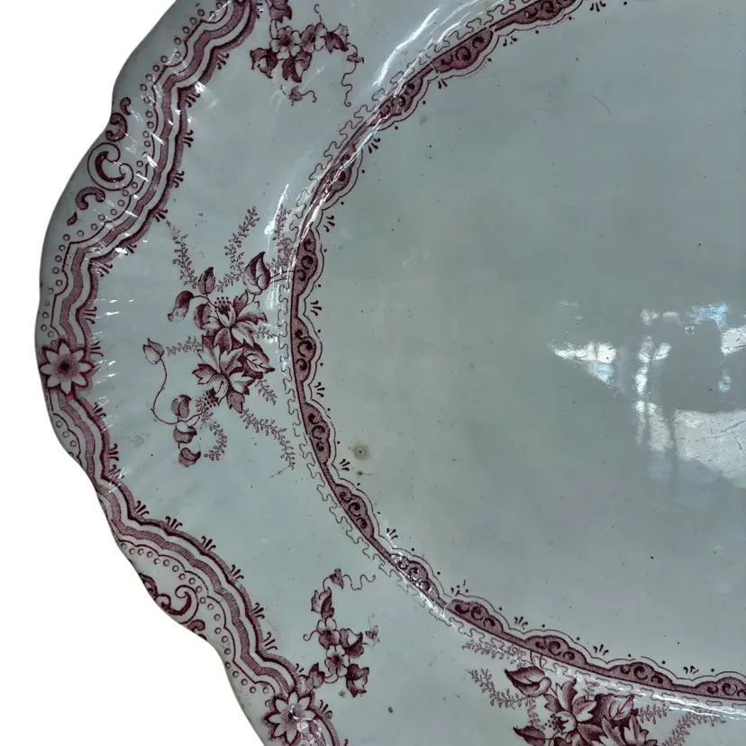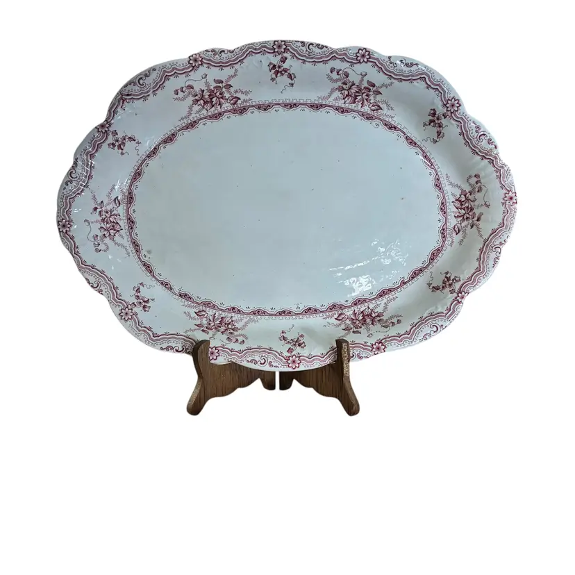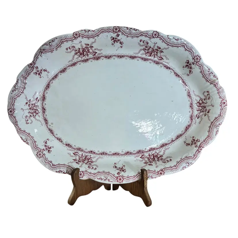 Flawless red floral platter from Staffordshire England, pattern name is EDINA measures 16” by 11 1/2”
