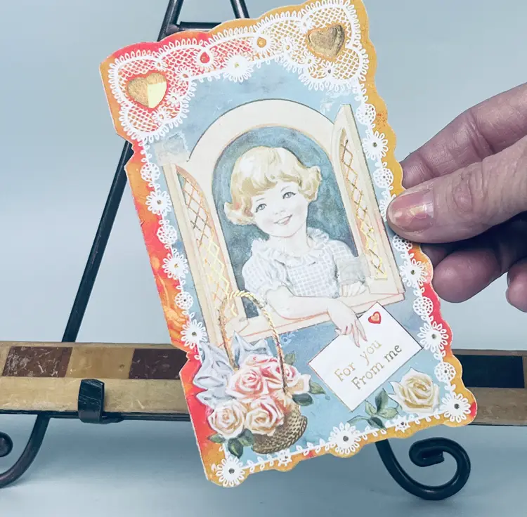 Hand cut paper lace embellishment with hearts, roses and gold accents. Signed to Bobby from Jeanine. Made in USA before mass-produced valentines. No condition issues found. NOTE: Vintage items come to me used and loved. Perfection is not guaranteed. Pictures are part of desciption. Please use zoom to examine before purchase.