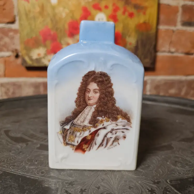A wonderful piece of European decorative porcelain, perfect for collectors of royal portrait wares, Carlsbad porcelain, or antique figural bottles.