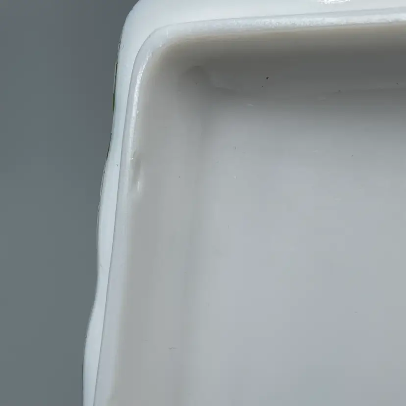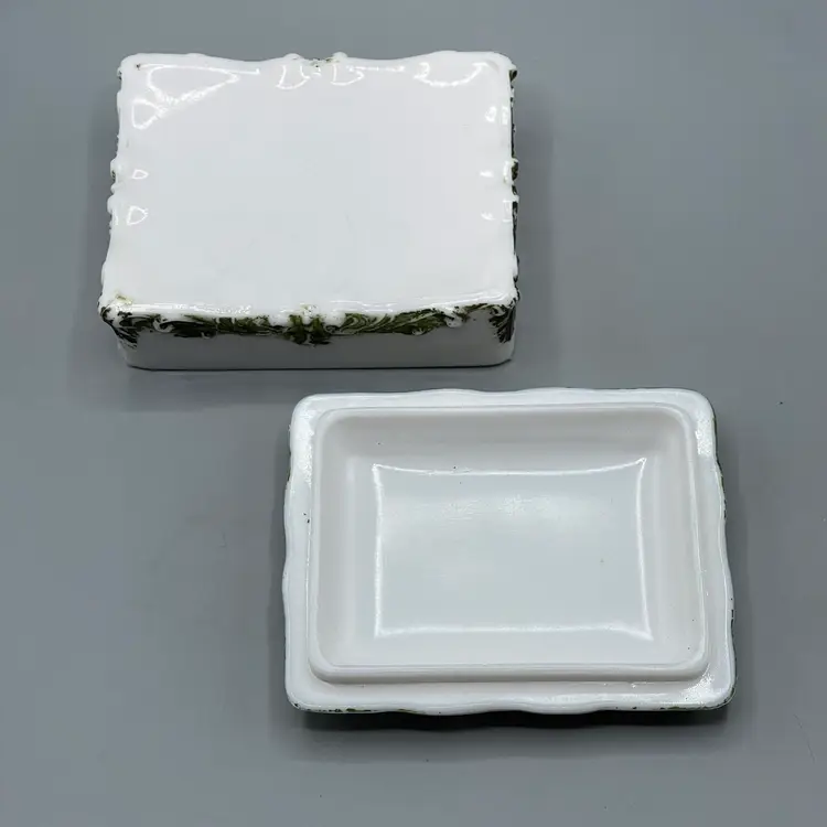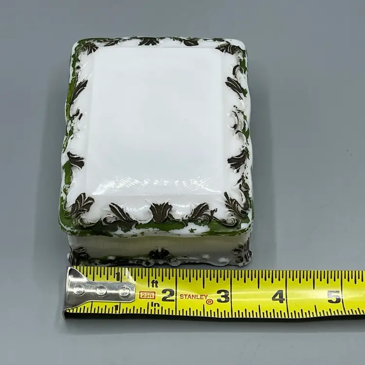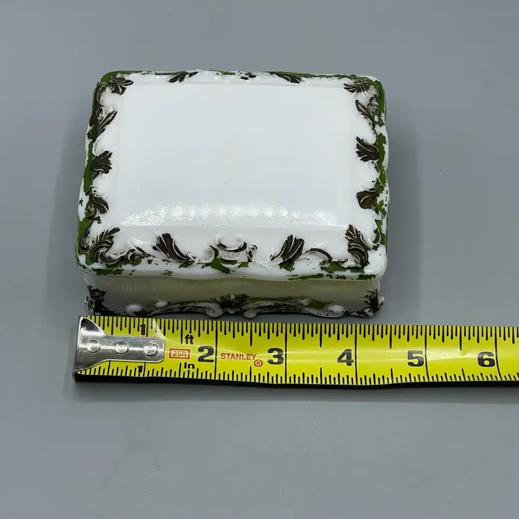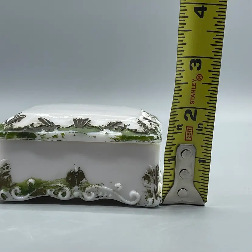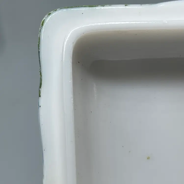 Some minor chips and cracks. Some manufacturers defect mold marks. About 4-1/2 inches long, 3-1/4 inches wide and 1-3/4 inches tall.