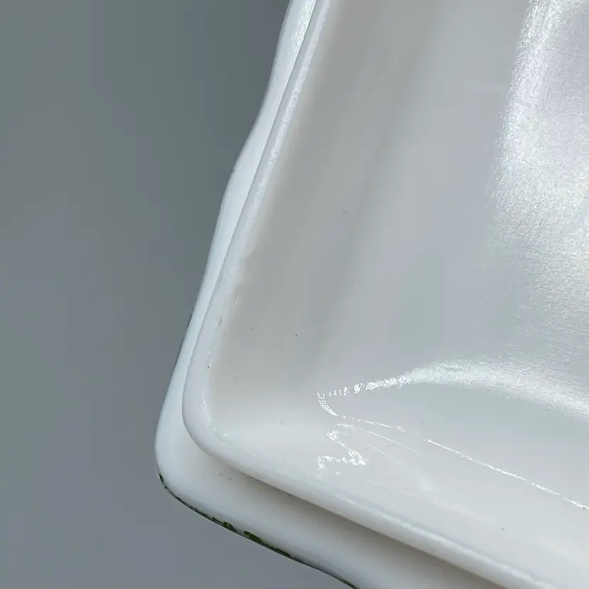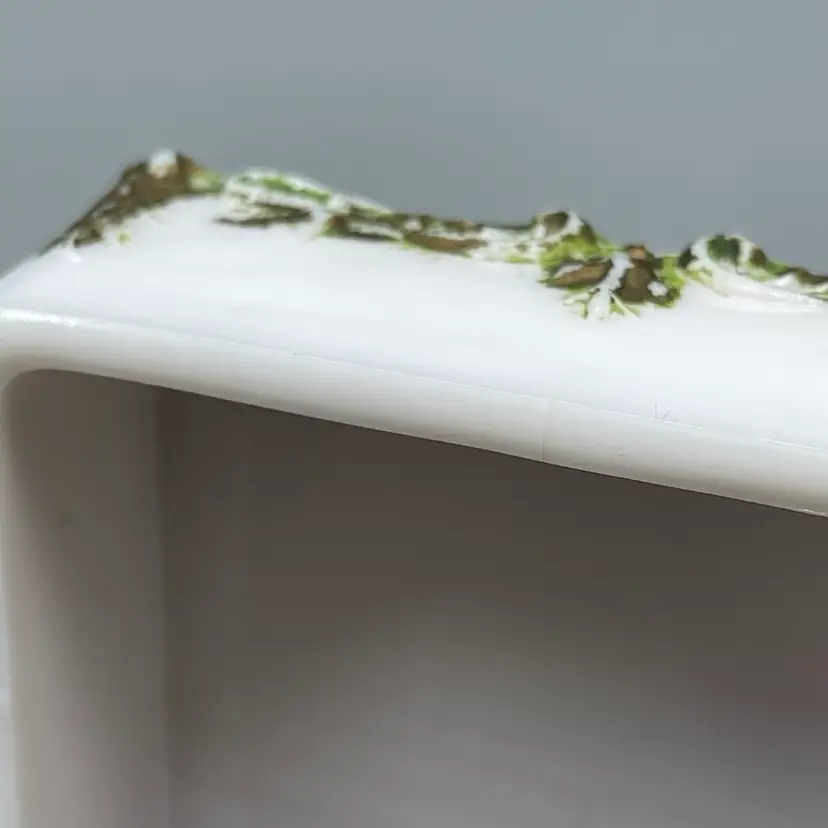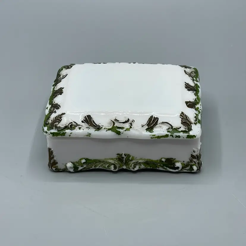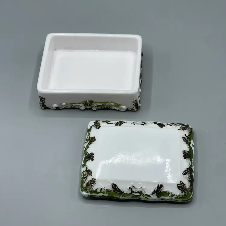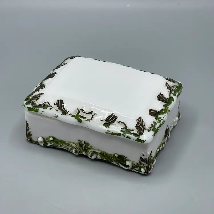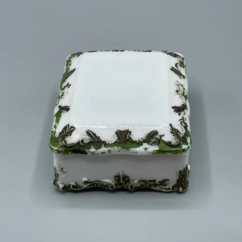 Some minor chips and cracks. Some manufacturers defect mold marks. About 4-1/2 inches long, 3-1/4 inches wide and 1-3/4 inches tall.