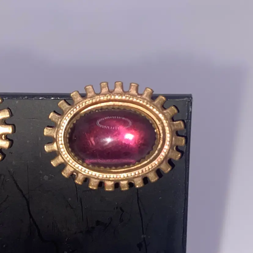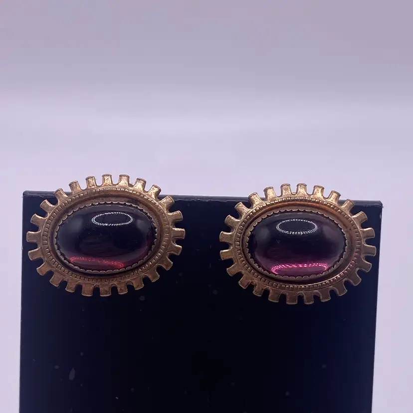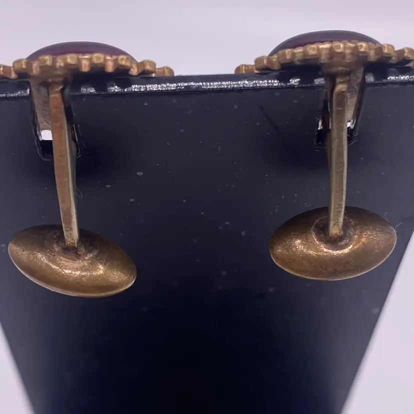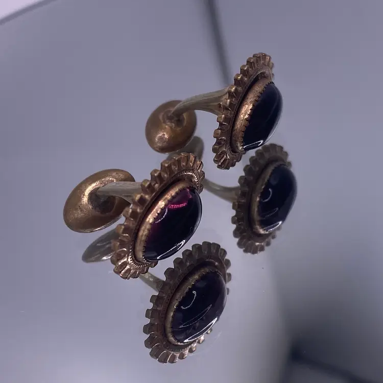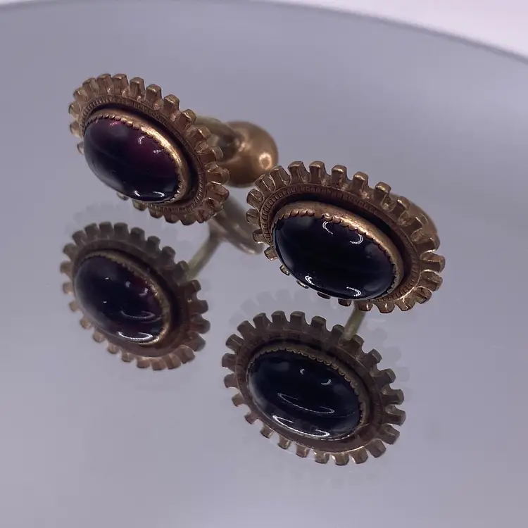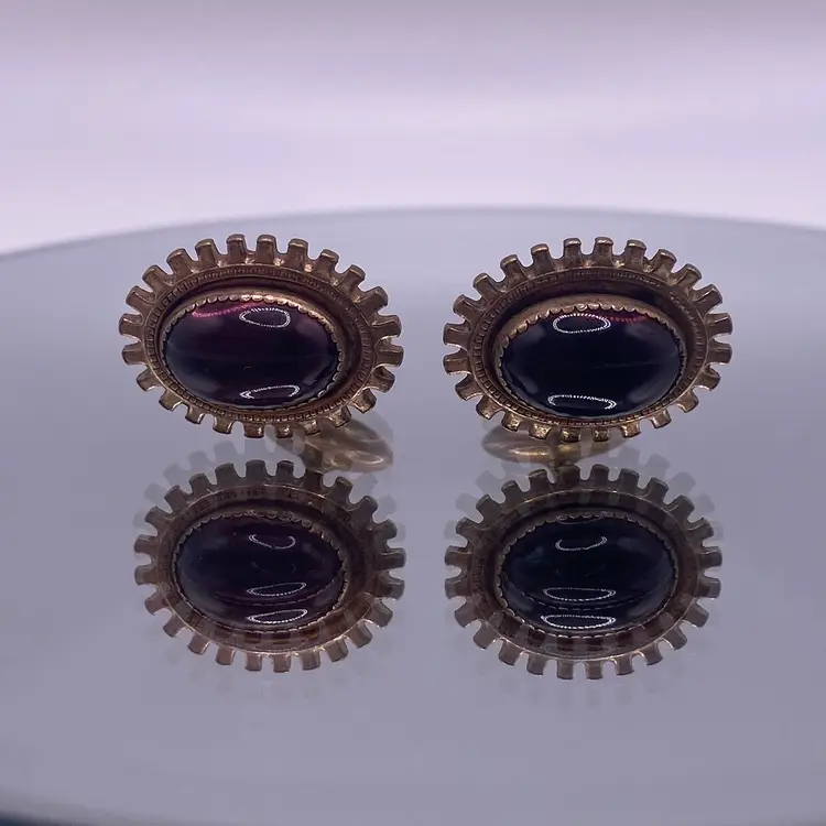 Add a touch of antique elegance to your style with these beautiful cufflinks. The oval shape and purple bezel set amethyst glass make for a striking combination, while the brass or 9k gold? gold filled? metal adds a touch of luxury. The bean back style and vintage design give these cufflinks a unique edge, perfect for any occasion.
