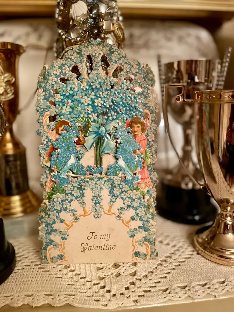 Gorgeous Victorian die cut, fold out Valentine. Stands on it’s own. 8.5 inches tall. Near mint condition.