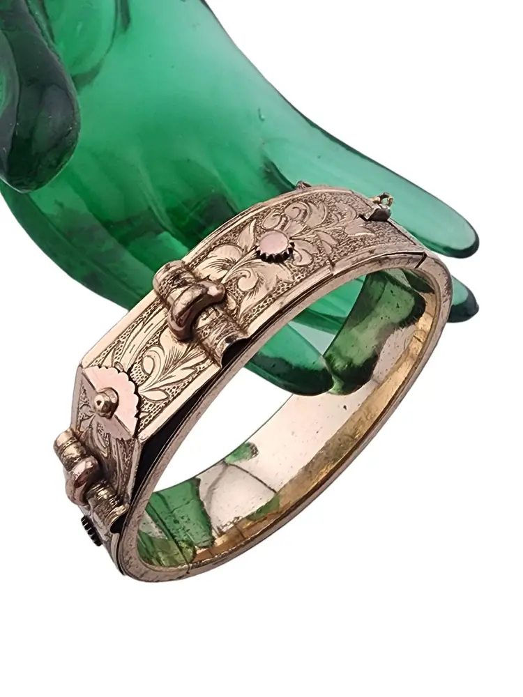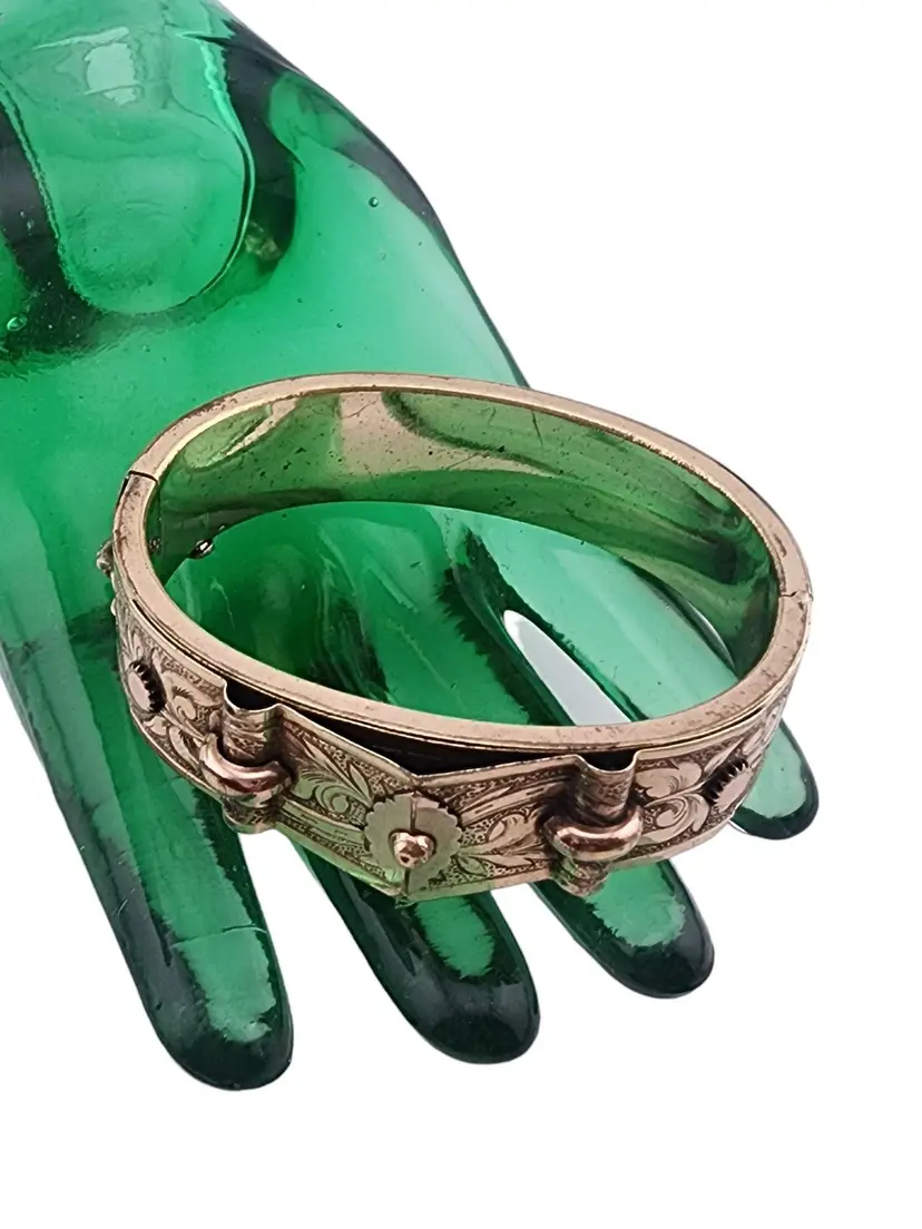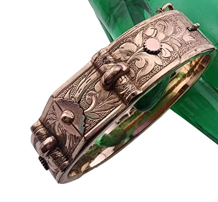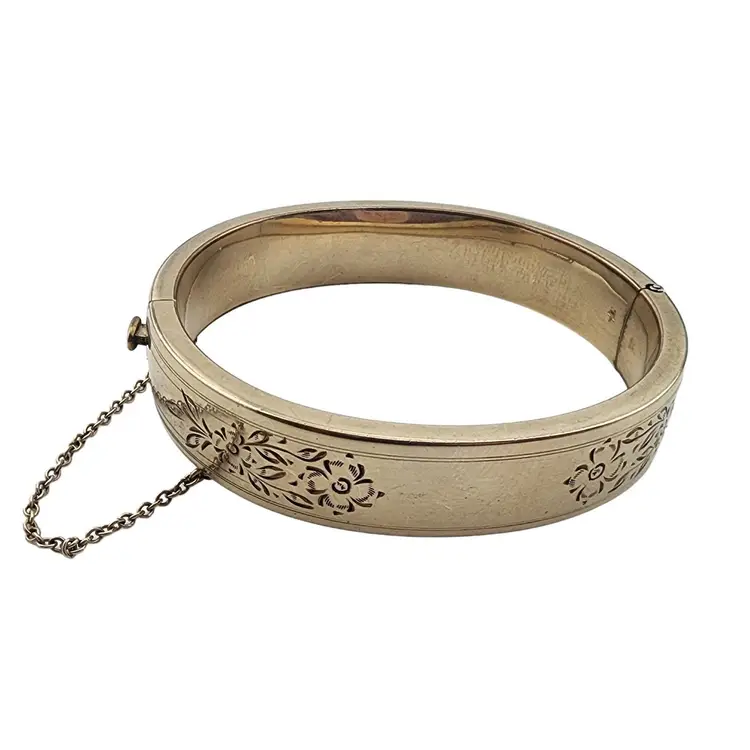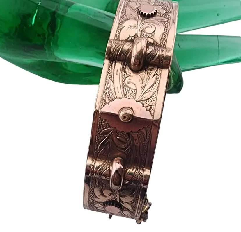 Antique Victorian Wonderful Gold Filled All-Etched Bangle Bracelet (A3308)