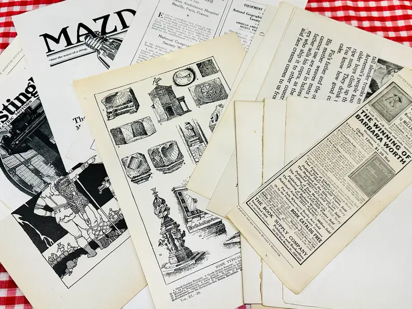 These bundles are great for any art project and range from the late 1800’s-1930’s. Each pack is different. The largest pages are standard 8-1/2x11.