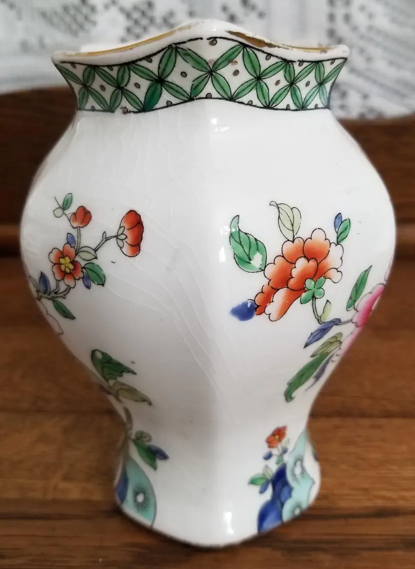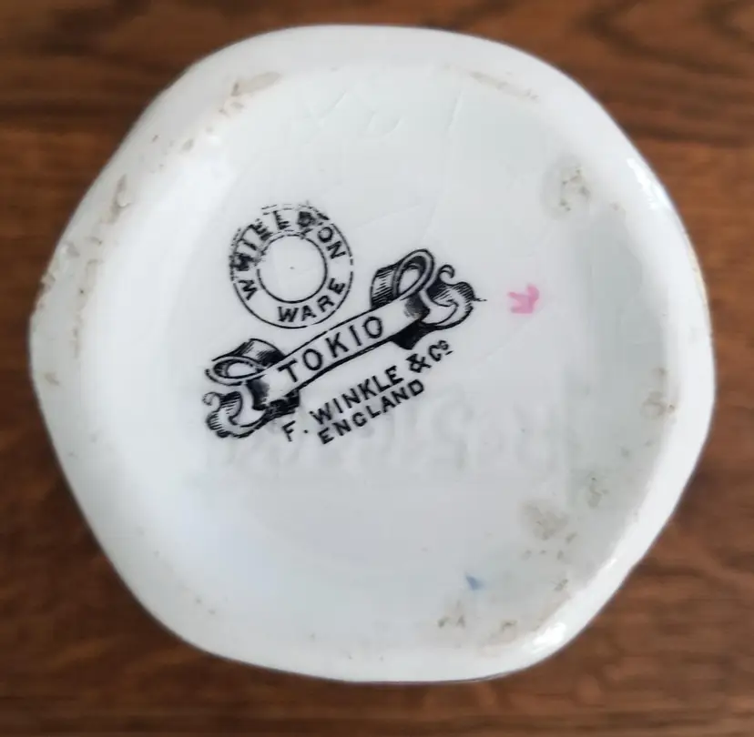 Antique Whieldon Ware Tokio Vase by F. Winkle & Co. England is 5 ½” tall. A beautiful ironstone vase with pink and rust colored flowers similar to their Antique Pink pattern. It was made around 1910. It has wear to the gold trim around the top and all over crazing appropriate for its age. No chips, cracks, or repairs. Please view the pictures and feel free to ask questions. Thank you for visiting my shop.