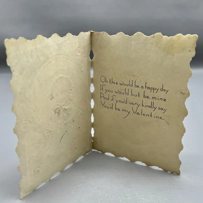 Antique Whitney Valentine Card Sailor Boy Butterflies Roses Embossed Scalloped 4.5"